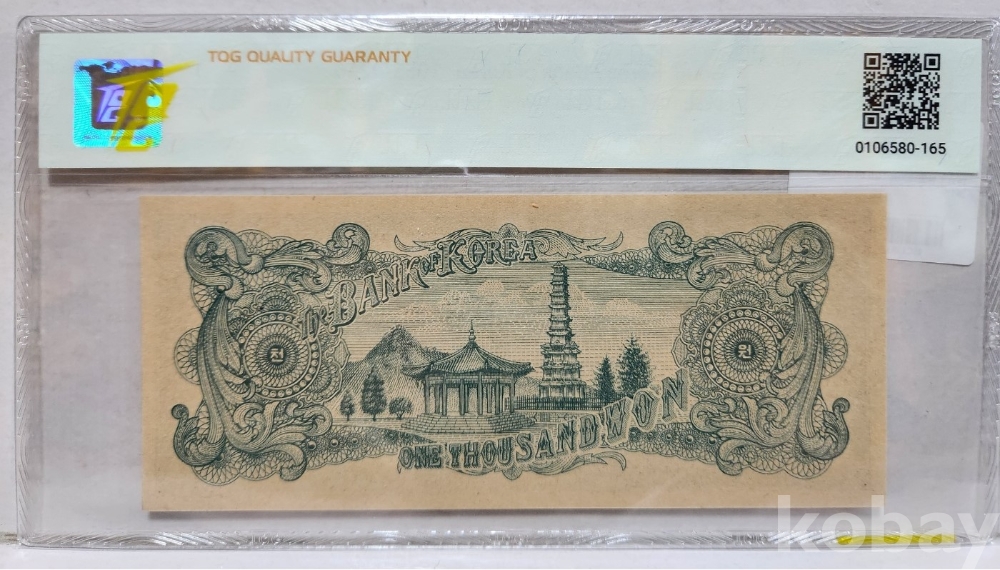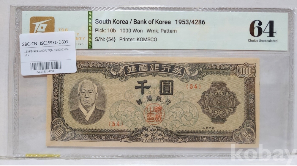 -대한민국 4286년 판번호 54번 중앙인 1000원 TQG 64 미사용 등급 입니다.