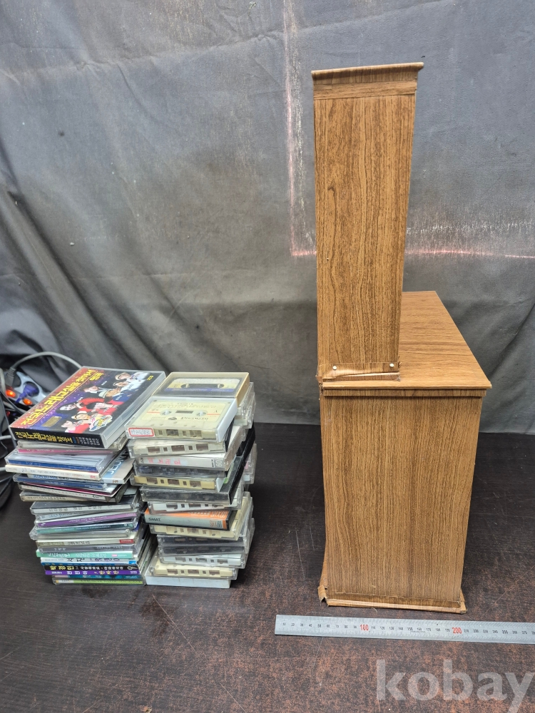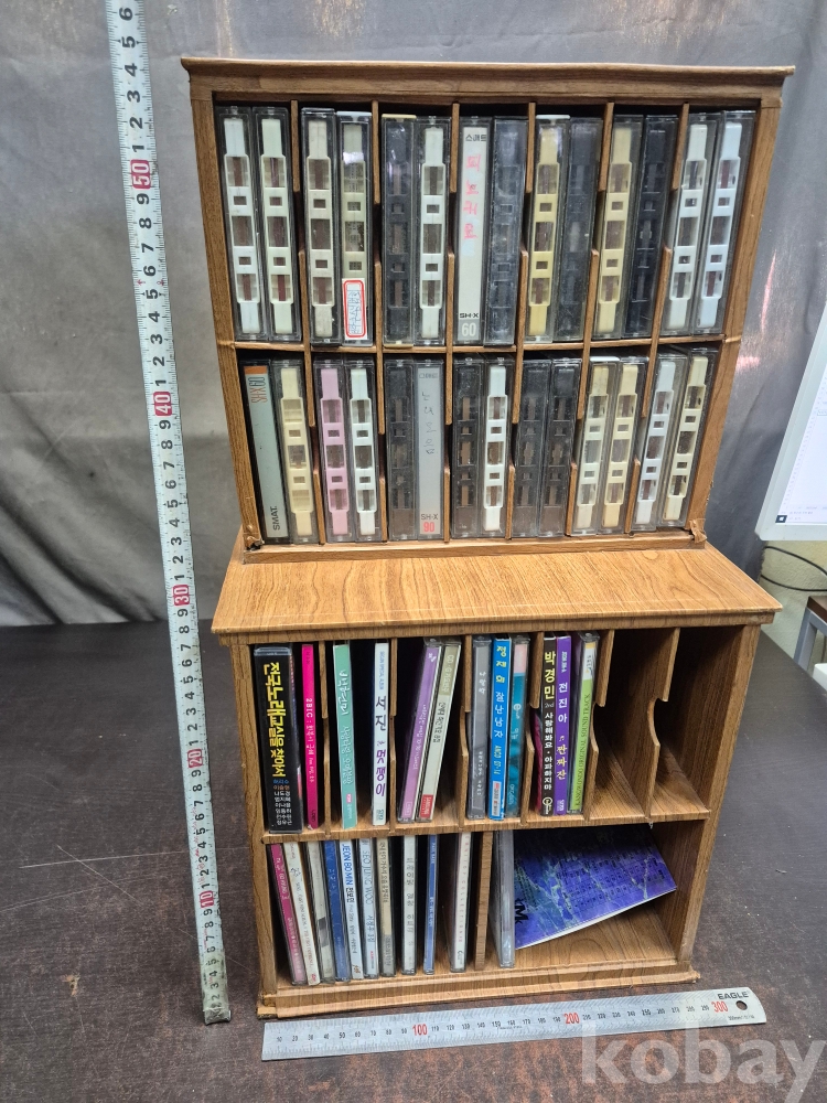 1960년대 원목으로 만들고 테이프로 붙인 카세트 테이프 & CD보관함 30*55*15