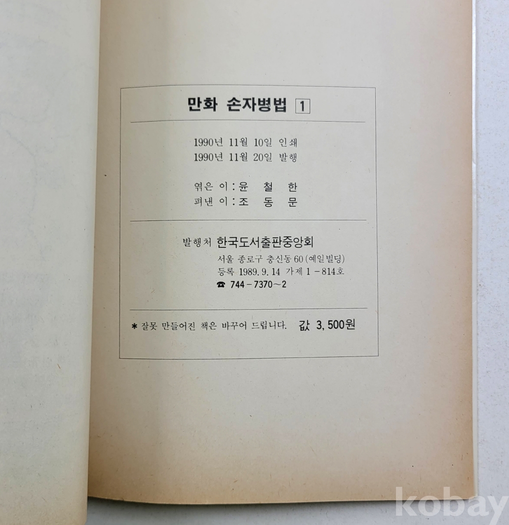 물 품 명 | 극화 손자병법(1~4)완결 총4권 / 고전극화시리즈 / 1990년 초판 / 한국도서출판중앙회 |