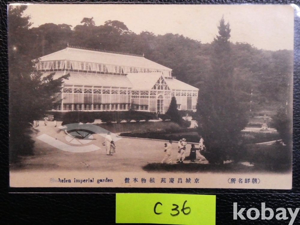 ▣근대한국엽서(진본): 경성 창경원 식물원 본관/1매/역사자료, 일제강점기 사진엽서, 그림엽서, 회엽서.C36
