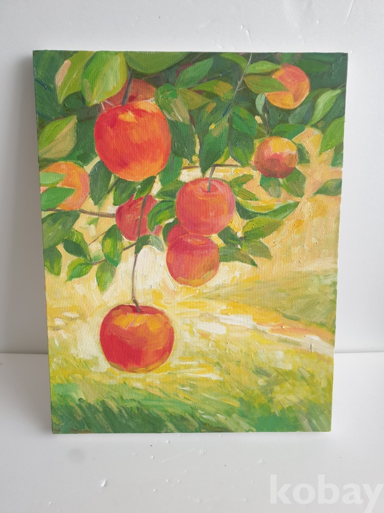[천원경매] 1-454 사과나무 유화 or 아크릴화 캔버스 액자(32*41cm)