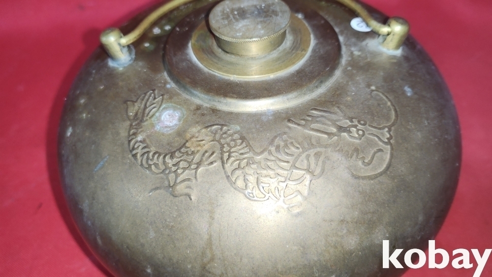 황동으로 만든 용과 봉황 문양 유담뿌(수통)입니다,