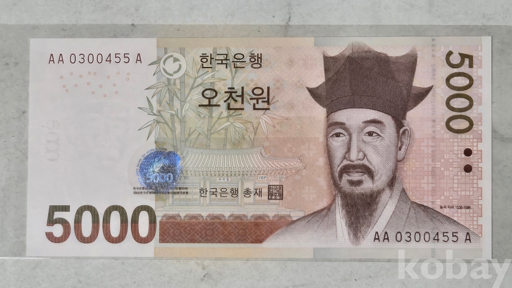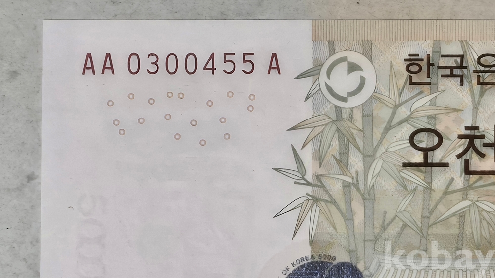 한국은행 마 오천원권 초판 기호 AAA 03포인트 455번
