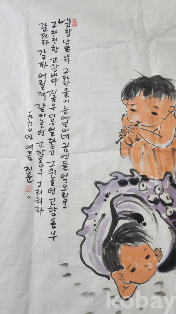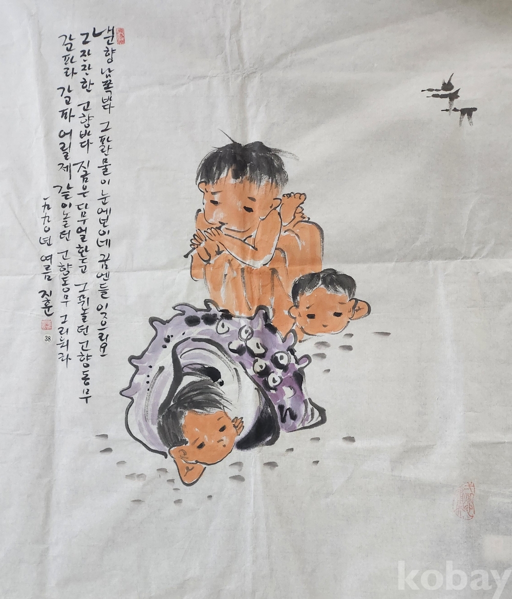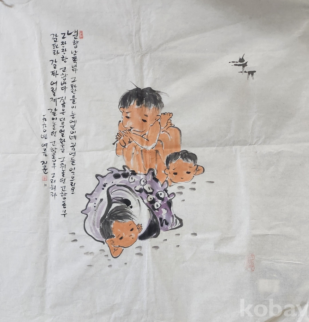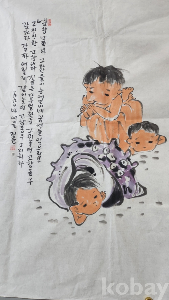 소라 껍데기와 함께하는 어린이 모습에서 천진난만  (天眞爛漫)함을 표출한 작품입니다.