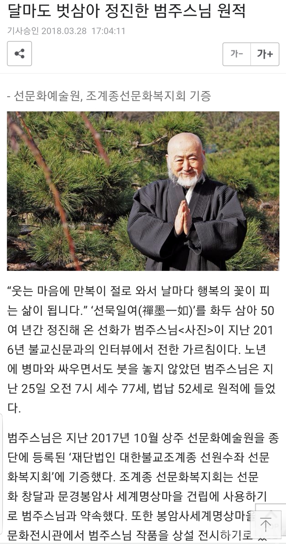 * 범주(1943-2018/ 홍익대미대졸<1966년>, 부산 APEC세계정상 영부인초청 달마 퍼포먼스<범어사,2006년>, 선문화예술원장)