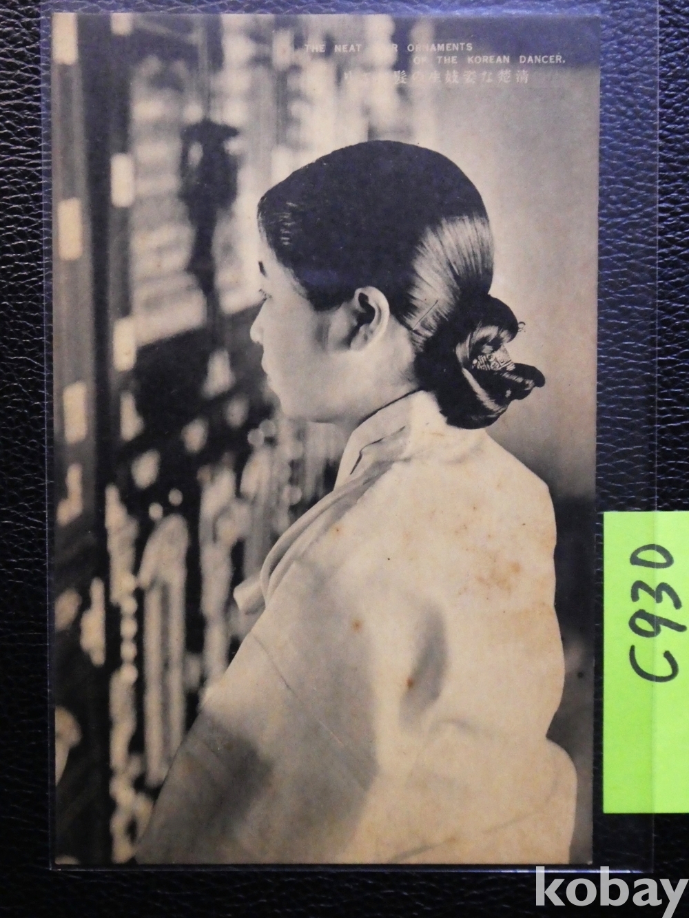▣한국근대엽서(진본): 청초한 기생의 뒷모습과 머리 모양, 대정사진공예소 발행/1매.