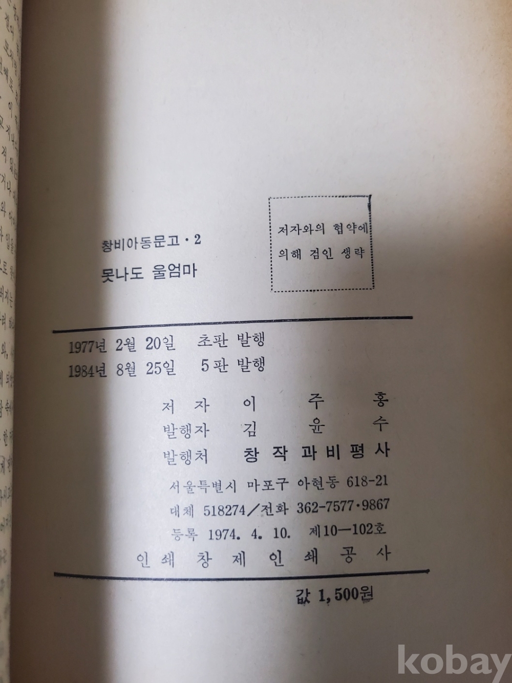 1. 못나도 울엄마, 이주홍, 창작과비평사, 1984년(1977년 초판), 278쪽, 상태 상, 사진 참조