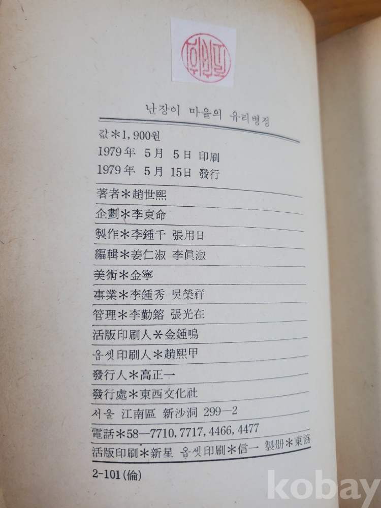 1. 난장이 마을의 유리병정, 조세희, 동서문화사, 1979년, 406쪽, 상태 상, 사진 참조