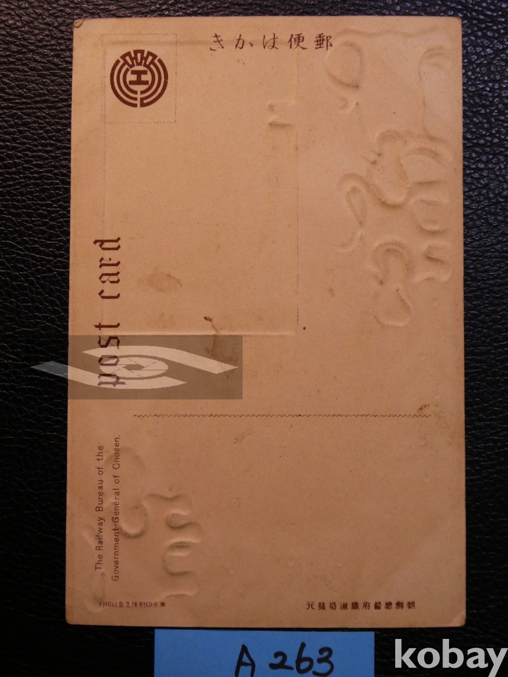 ▣근대한국 엽서(진본): 조선총독부 철도국 발행 홍2보 엽서 1매. 앰보싱 처리.
