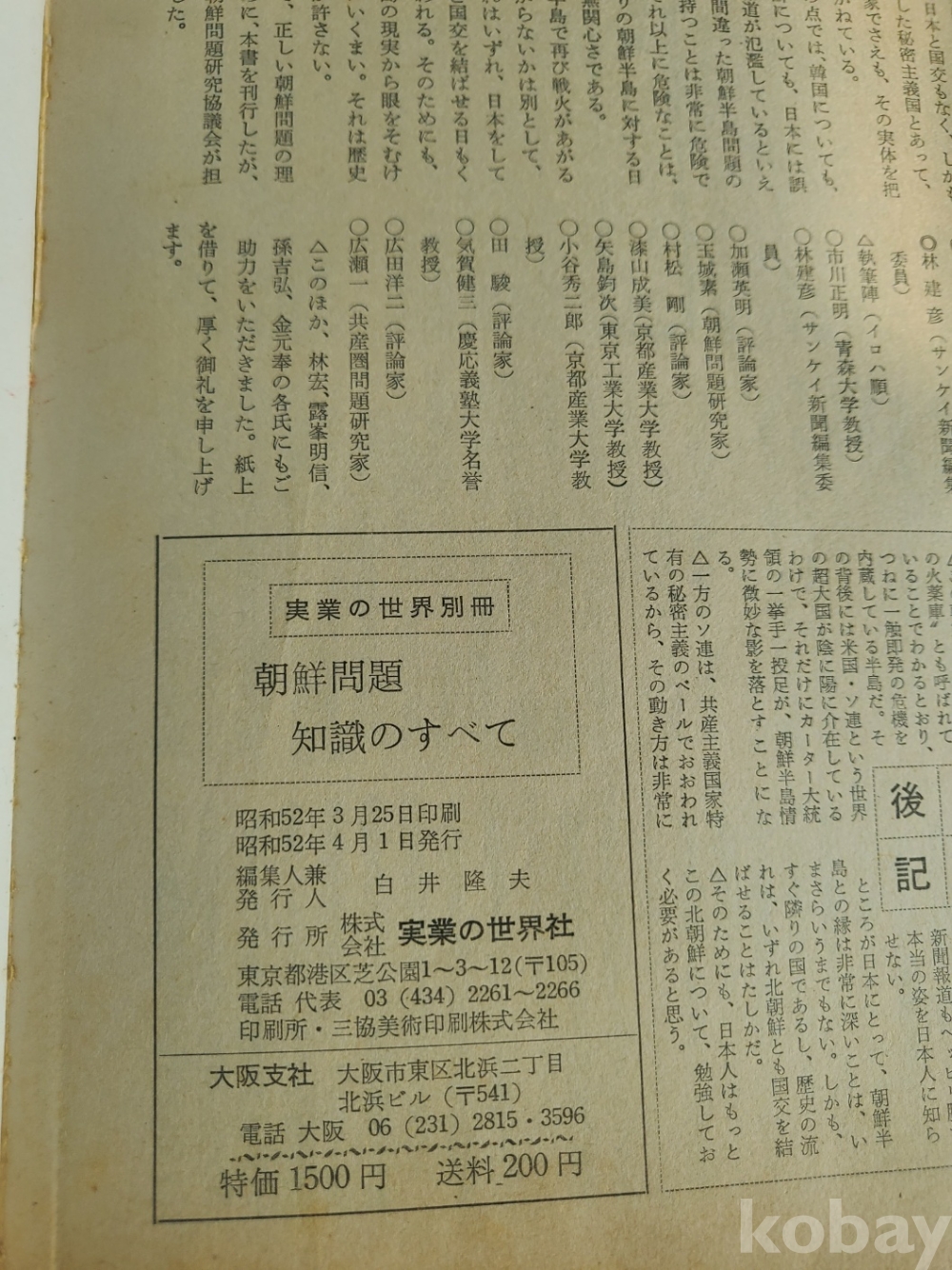 1. 북한 문제 모든 지식, 실업의 세계사(주), 1977년, 460쪽, 일어판, 상태 상, 사진 참조