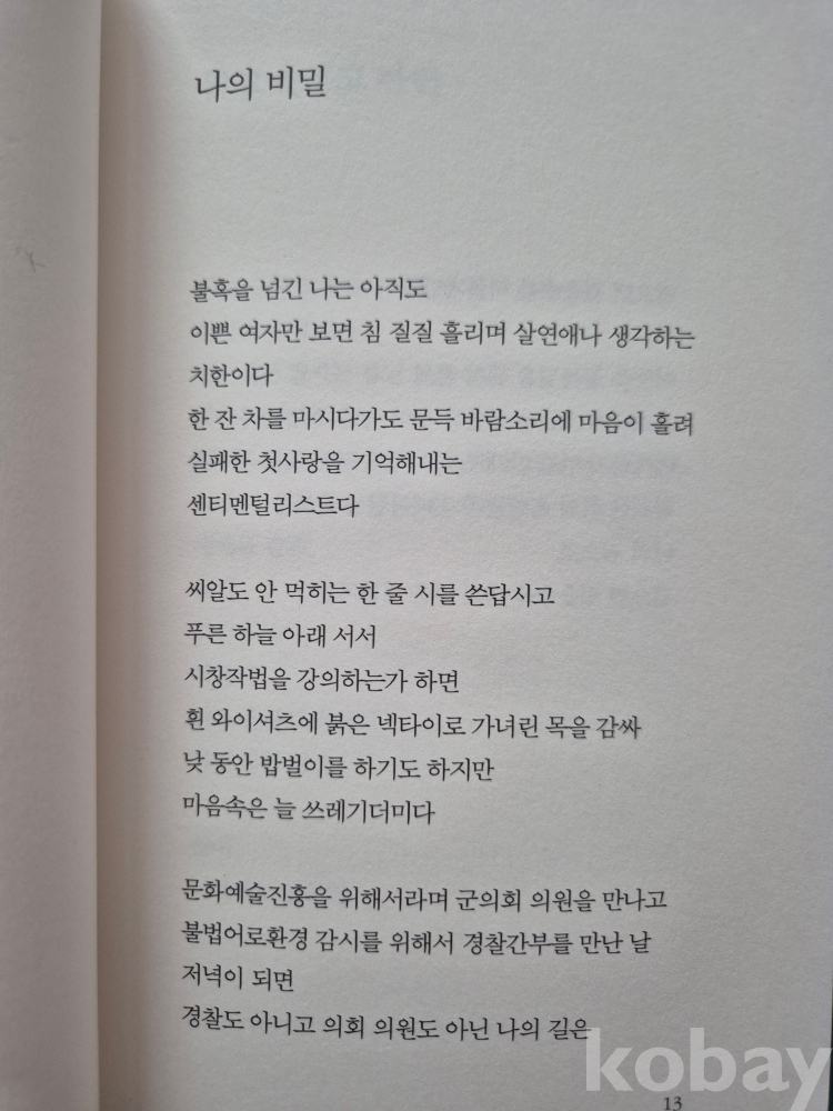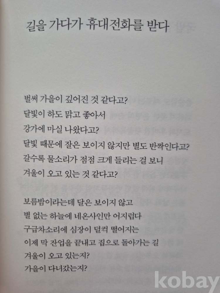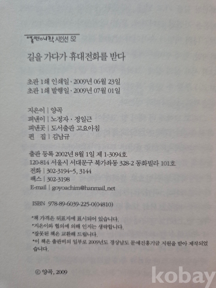 2009년 발간한 제2시집 『길을 가다가 휴대전화를 받다』