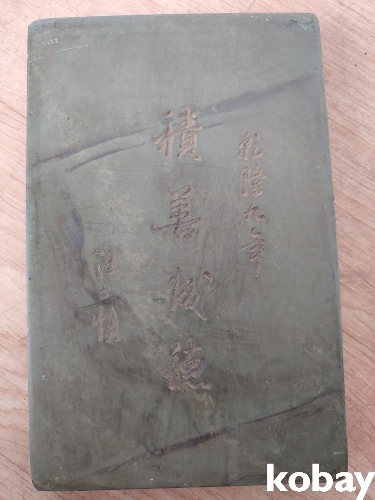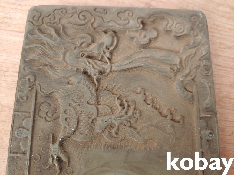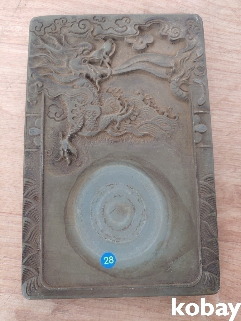 용 조각이 있는 단계석 벼루 입니다.