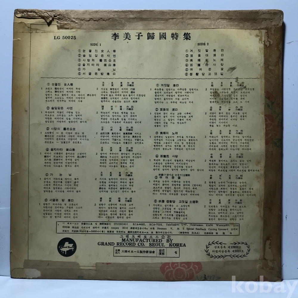 | 자켓상태 | VG : 주름, 접힘, 모서리 찢김 다수 | 음반상태 | VG : 생활 기스 다수, 가벼운 노이즈 존재 | 발매정보 | 알수없음 | 가사지여부 | 무 |