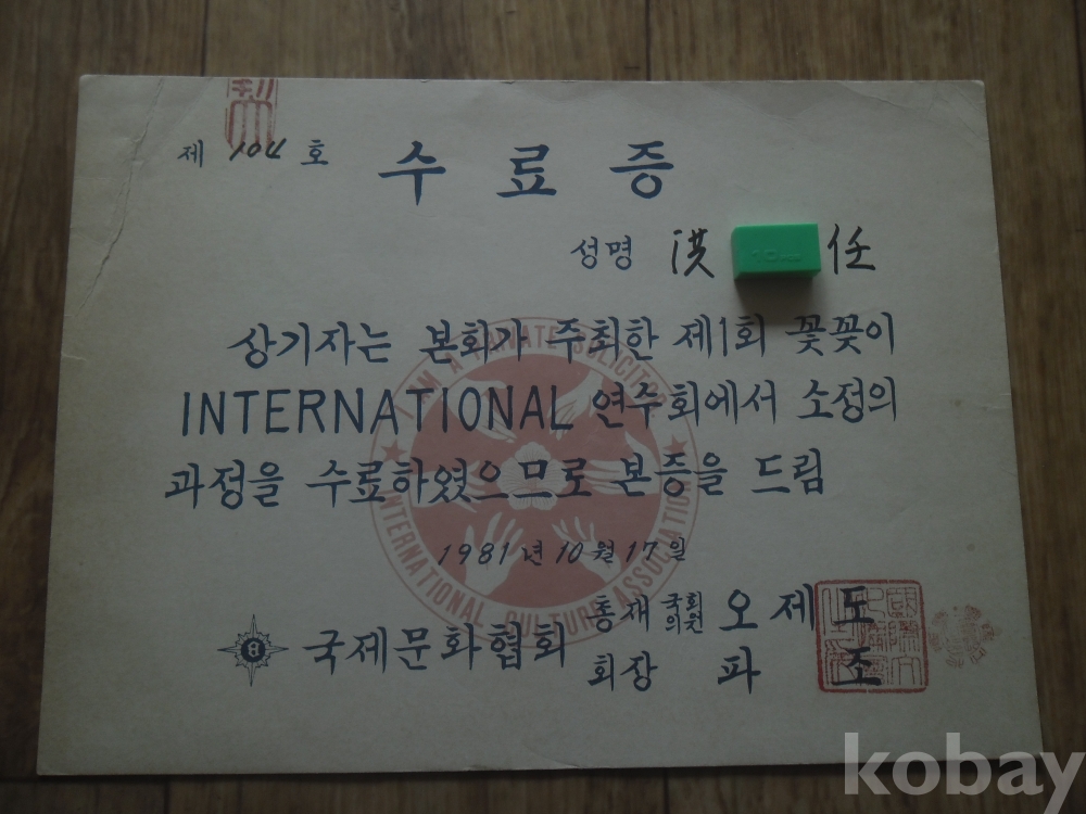 1981년 국제문화협회 제1회 꽃꽃이 연수회 수료증