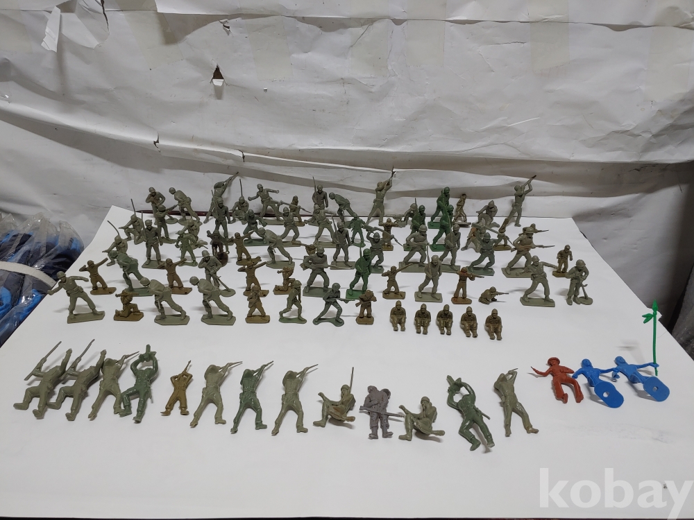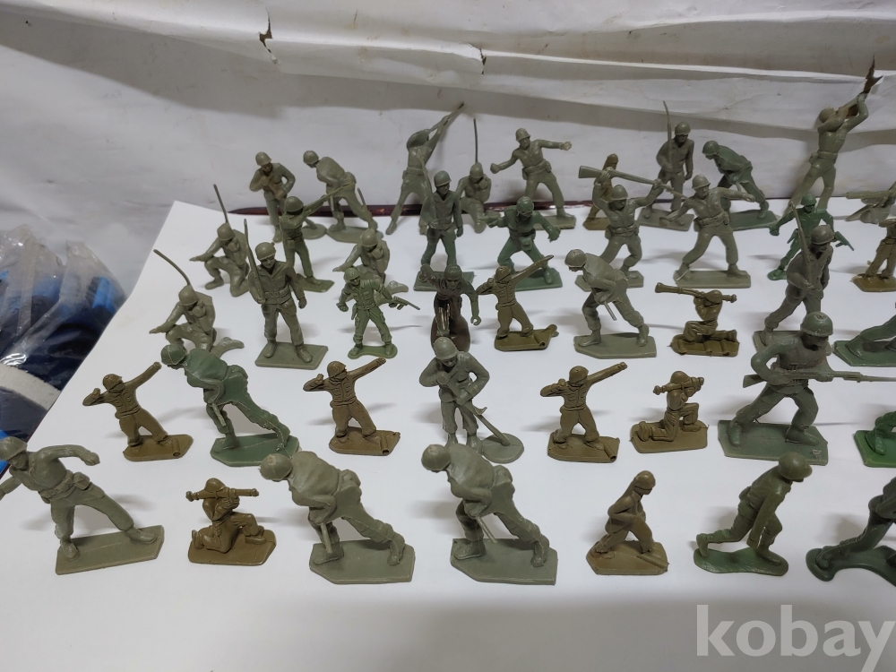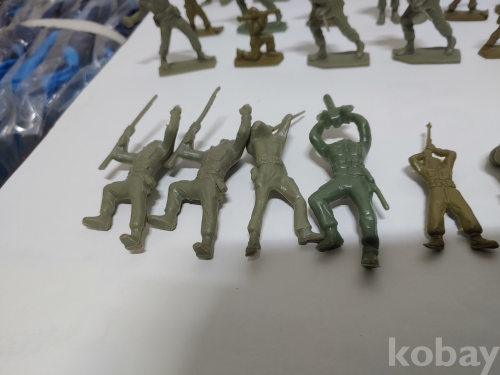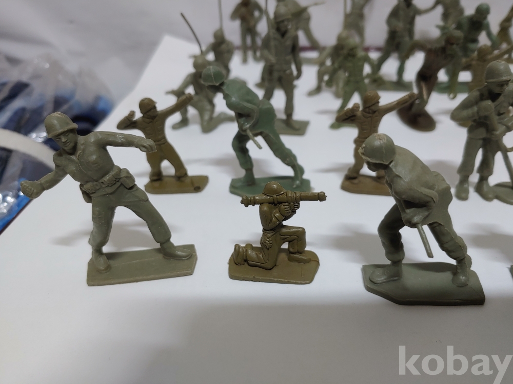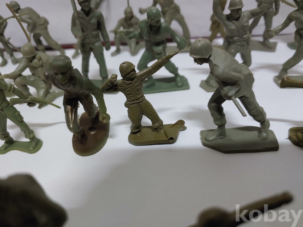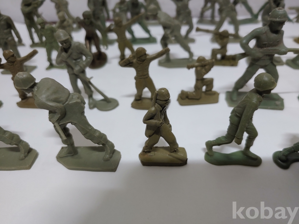 ""총과 포탄 대포를 든 모양에 총검술을 하는 여러종류에 프라스틱 미니 군인모양에 군인모형 군인 케릭터 장난감 85개 일괄""
