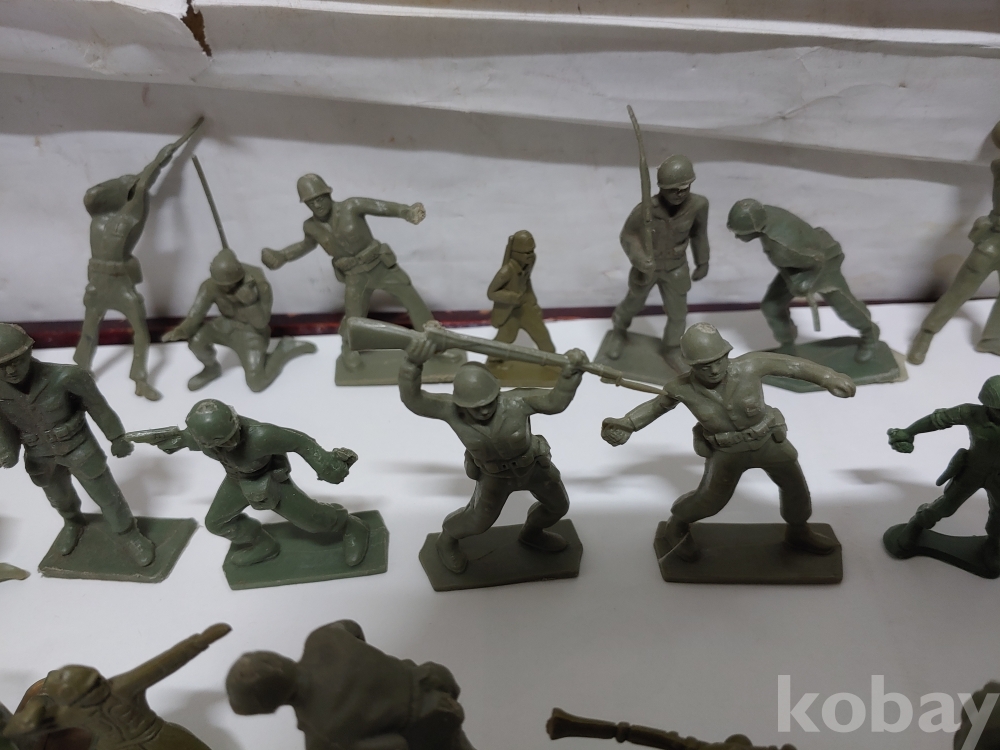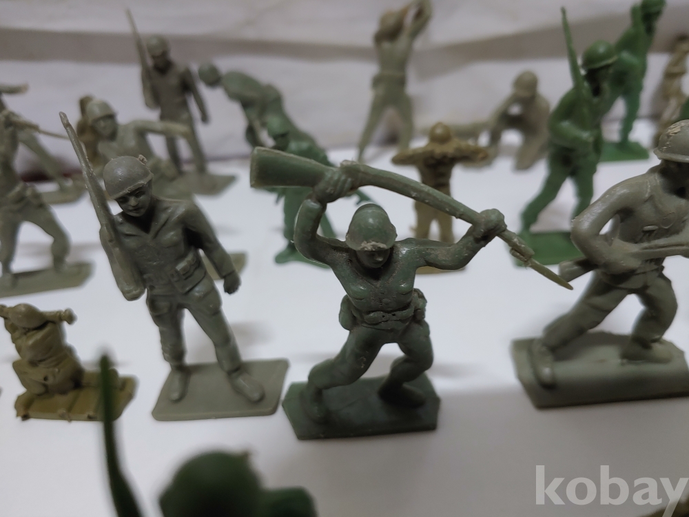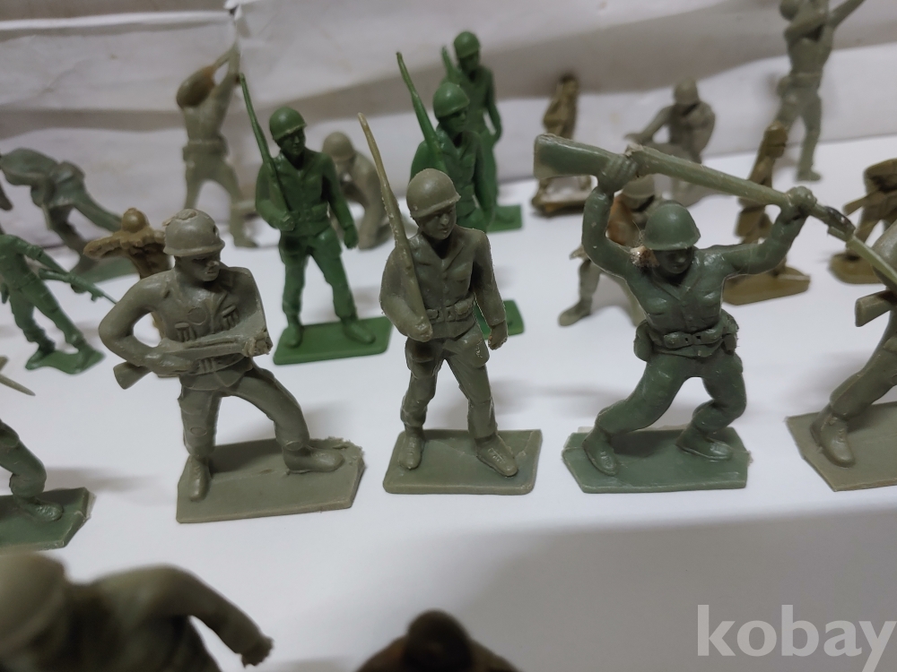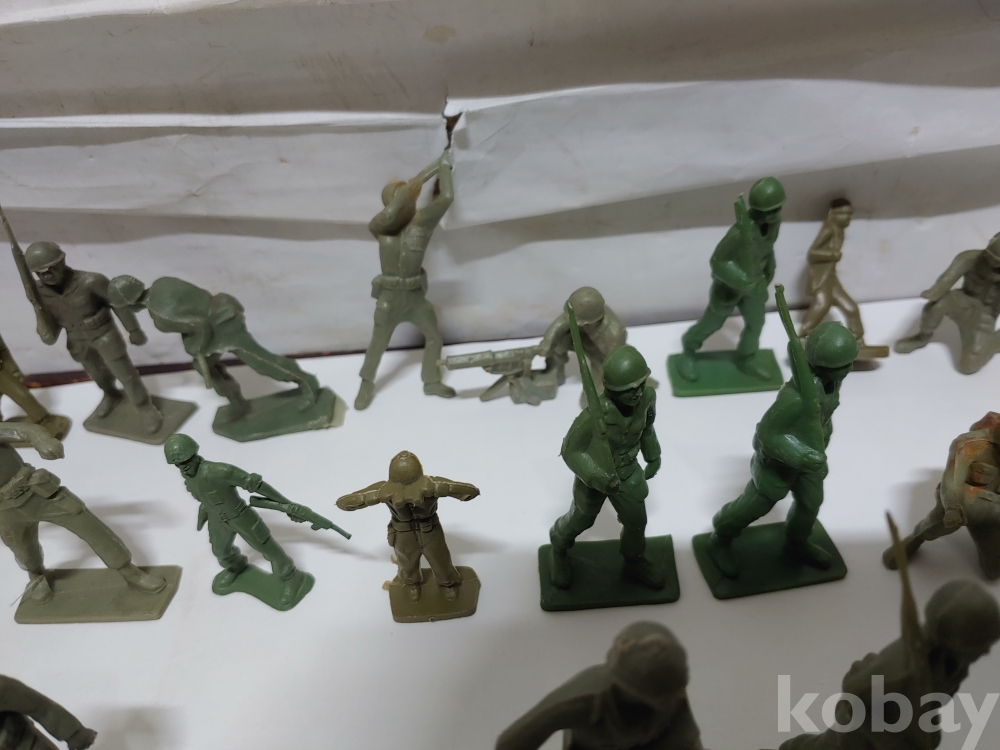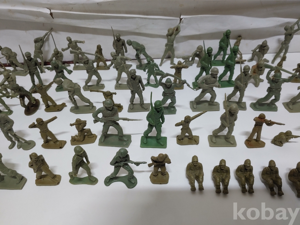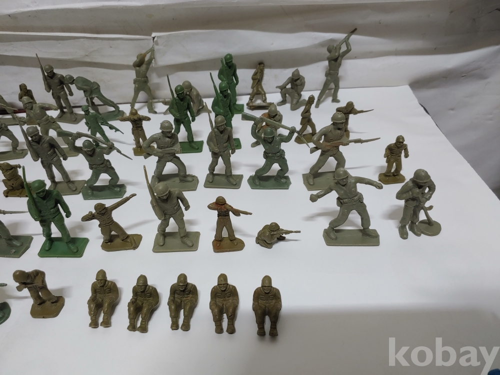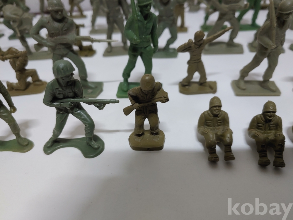 ""총과 포탄 대포를 든 모양에 총검술을 하는 여러종류에 프라스틱 미니 군인모양에 군인모형 군인 케릭터 장난감 85개 일괄""