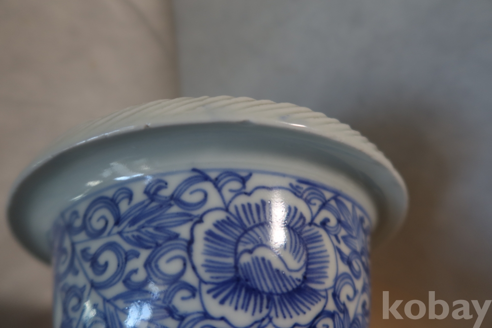19세기 이마리 고미술 도자기 임니다 멋진 디자인 청화색감 등등 당대의 명품 임니다 정성을 가진 명품 입술에는세월의미세한칩이보임니다 14번사진