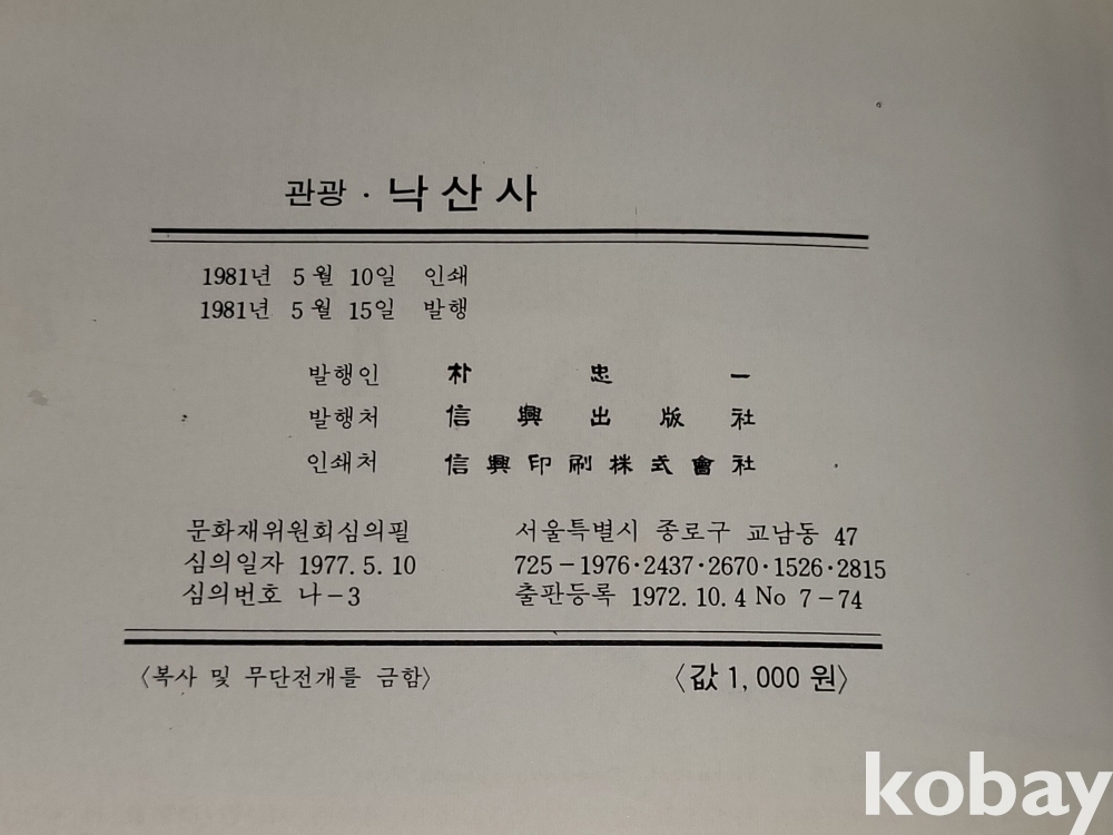 빈티지 세월 감이 느껴지는 희귀한 1981년 낙산사 관광 책자입니다.