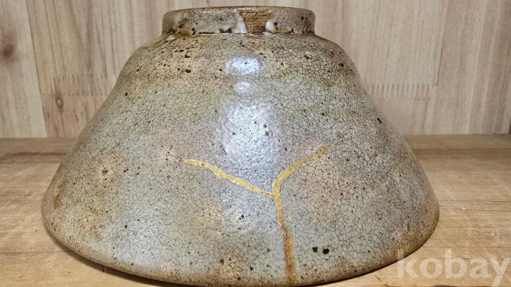 특히 이 기물은 과거에 파손된 부분을 금으로 메운 '킨츠기(Kintsugi, 금수리)' 흔적이 있어 더욱 특별합니다. 이는 기물을 아끼고 사랑했던 차인(茶人)의 마음과 스토리가 담겨 있음을 보여주는 증표이기도 합니다.