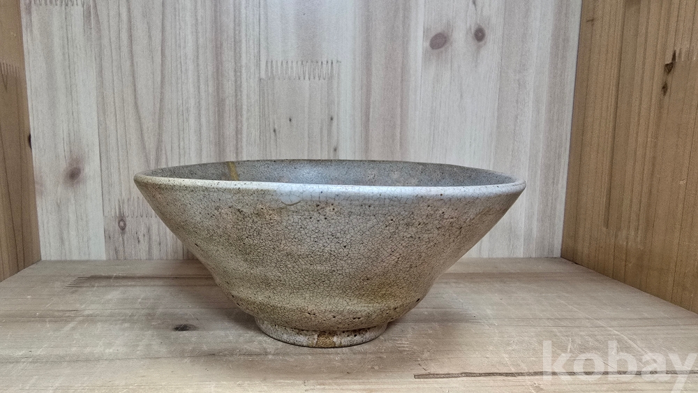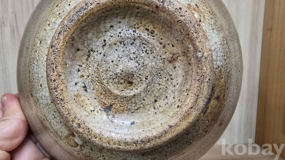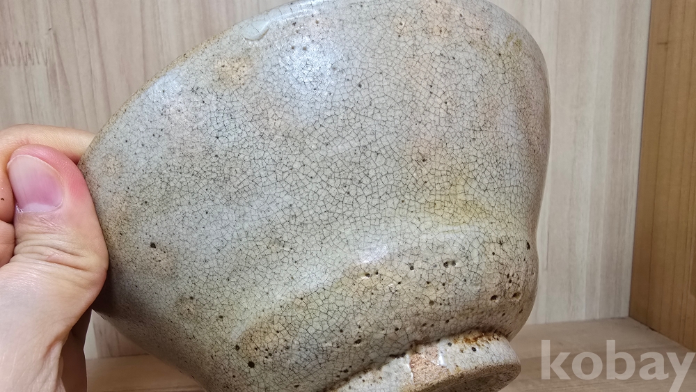 흔히 '메밀사발'이라고도 불리는 이 다완은, 입구(구연부)가 살짝 밖으로 벌어지고 굽이 낮은 것이 특징입니다. 기물 전체를 감싸고 있는 촘촘한 빙열 사이로 세월의 흔적과 찻물이 배어들어 깊은 운치를 자아냅니다.