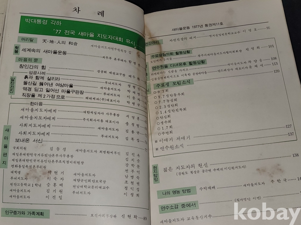 빈티지 세월 감이 느껴지는 1977년 새마을 지도자 연수원 발행 비매품 새마을운동 고서적입니다.