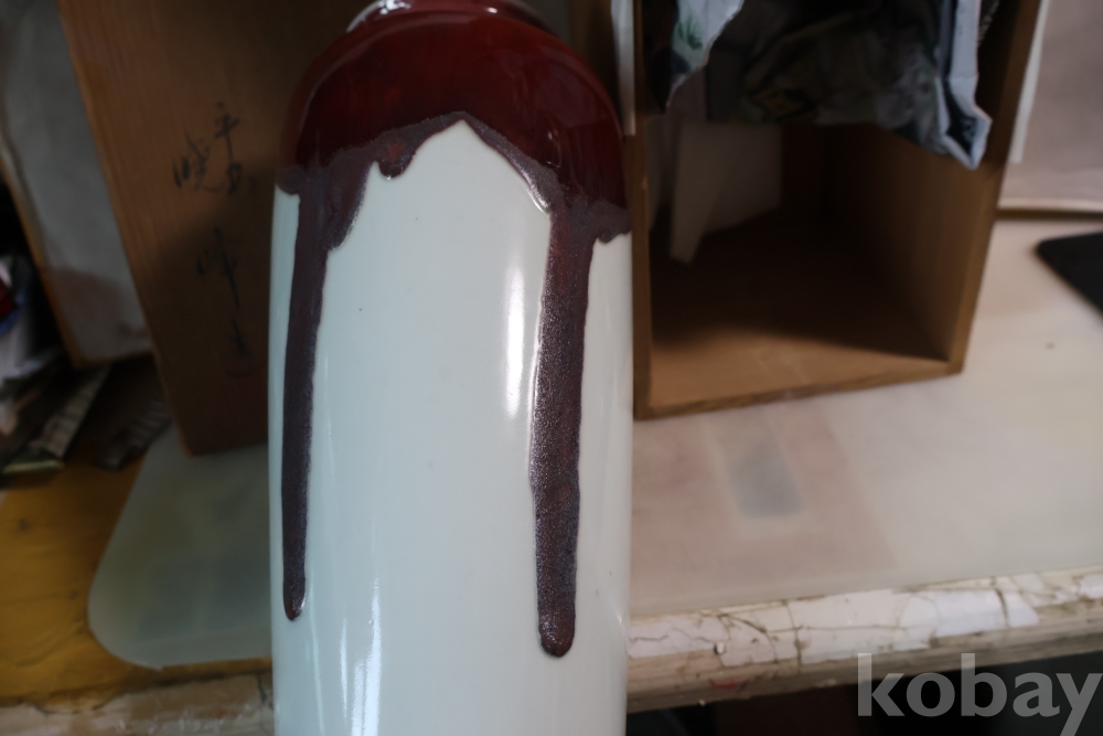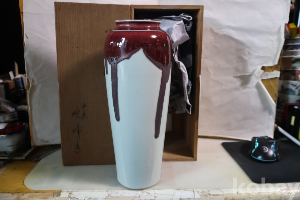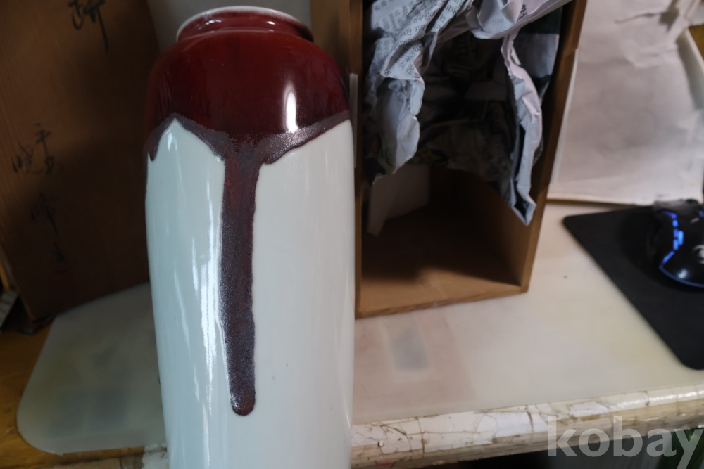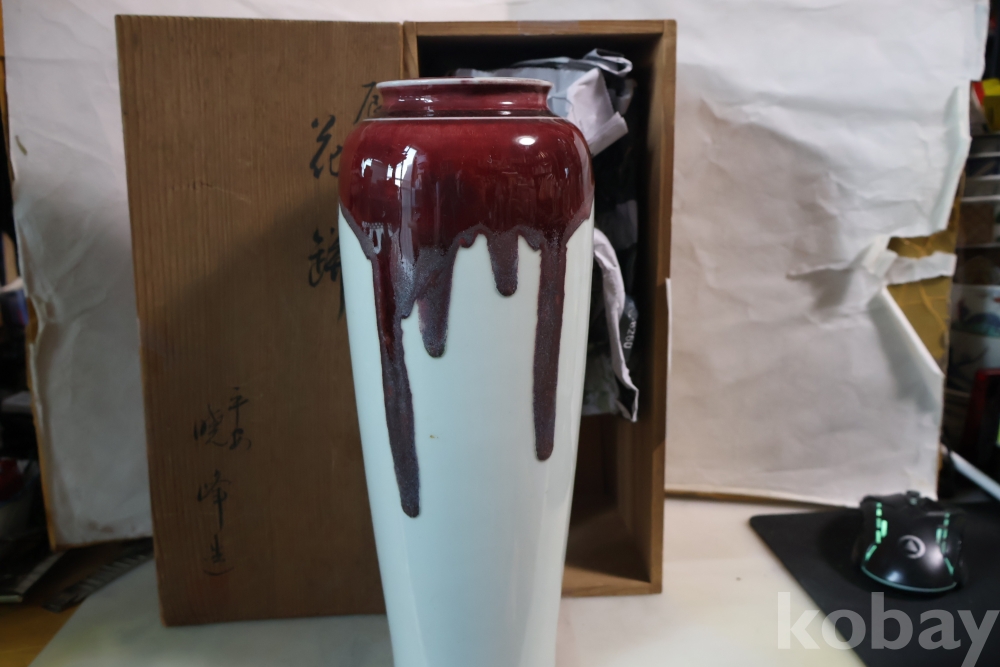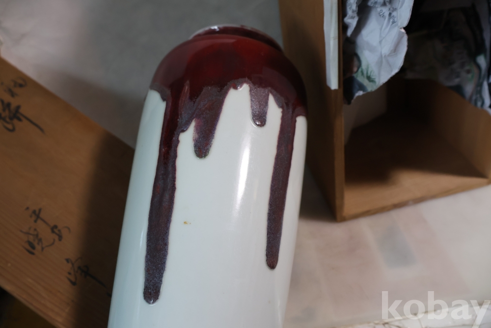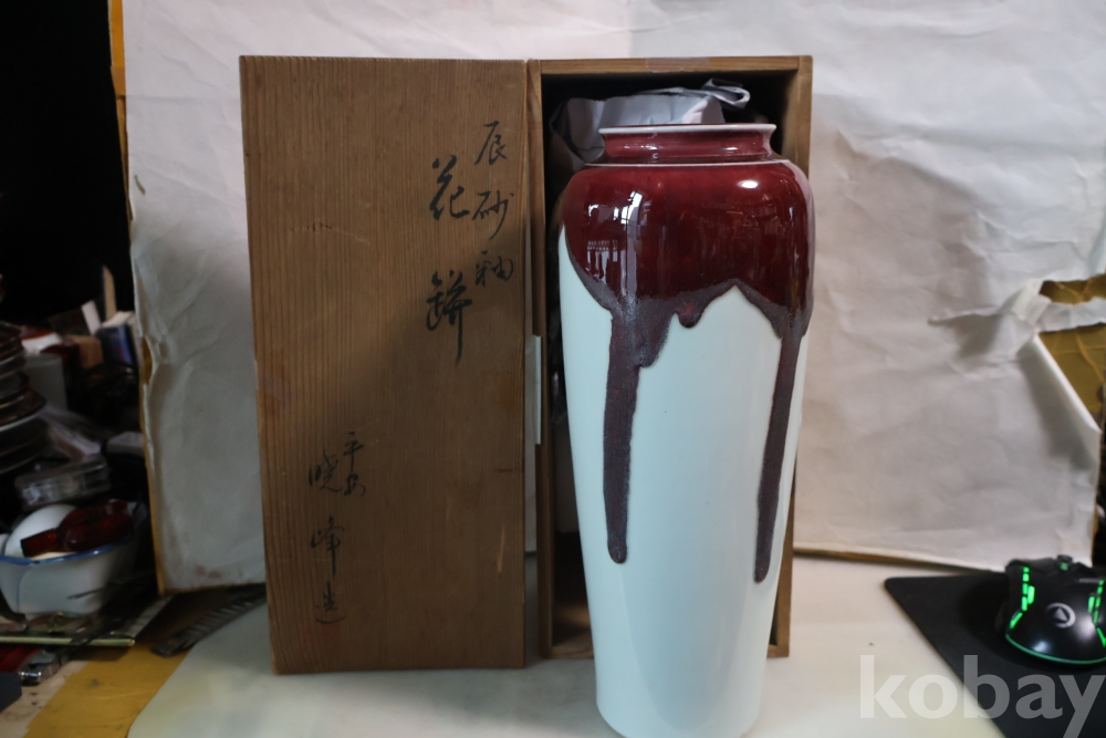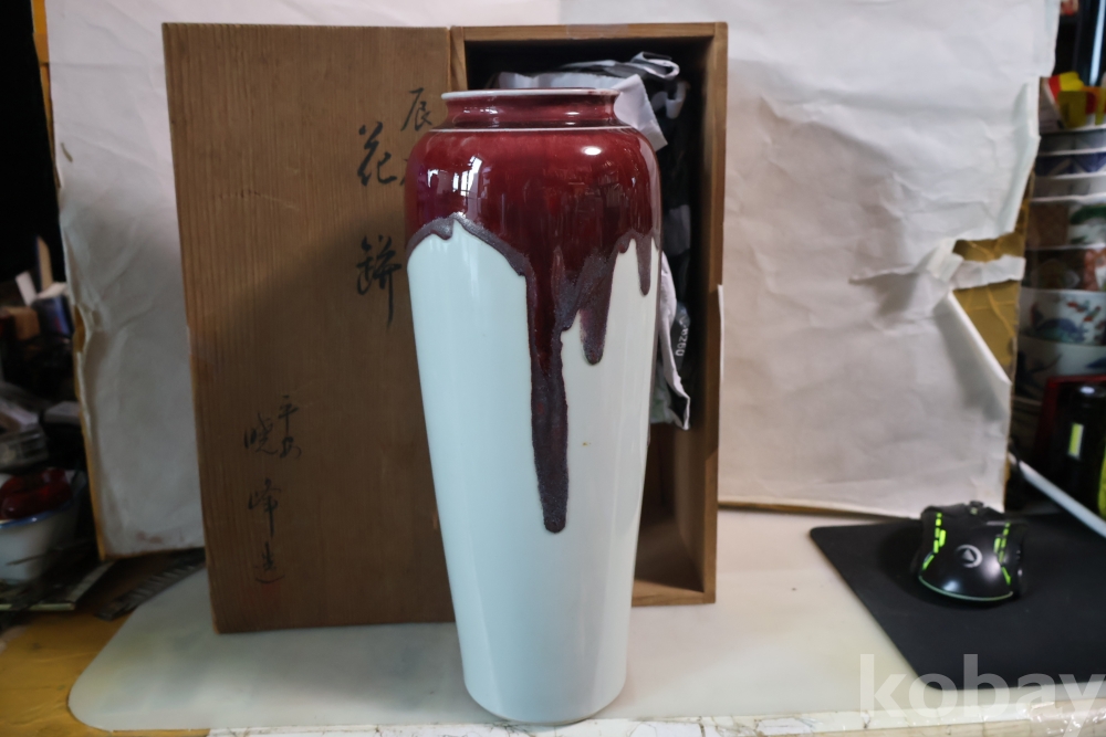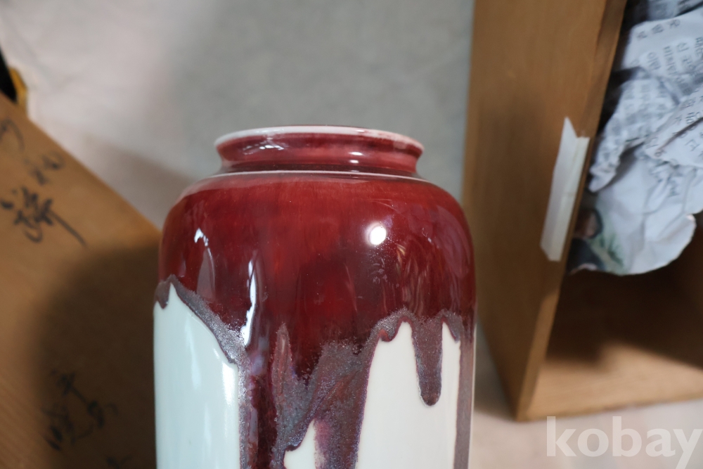 특이한 작품 대형 도자기 임니다 진사 처리된 문양 등등 도공의 혼을 가진 당대의 명품 임니다 무개감을 가진 두둡한 도자기 상자는 세월의 흔적이 보임니다