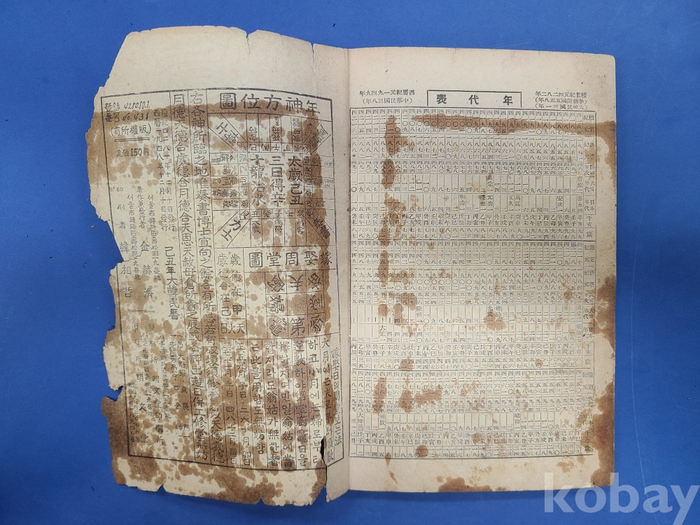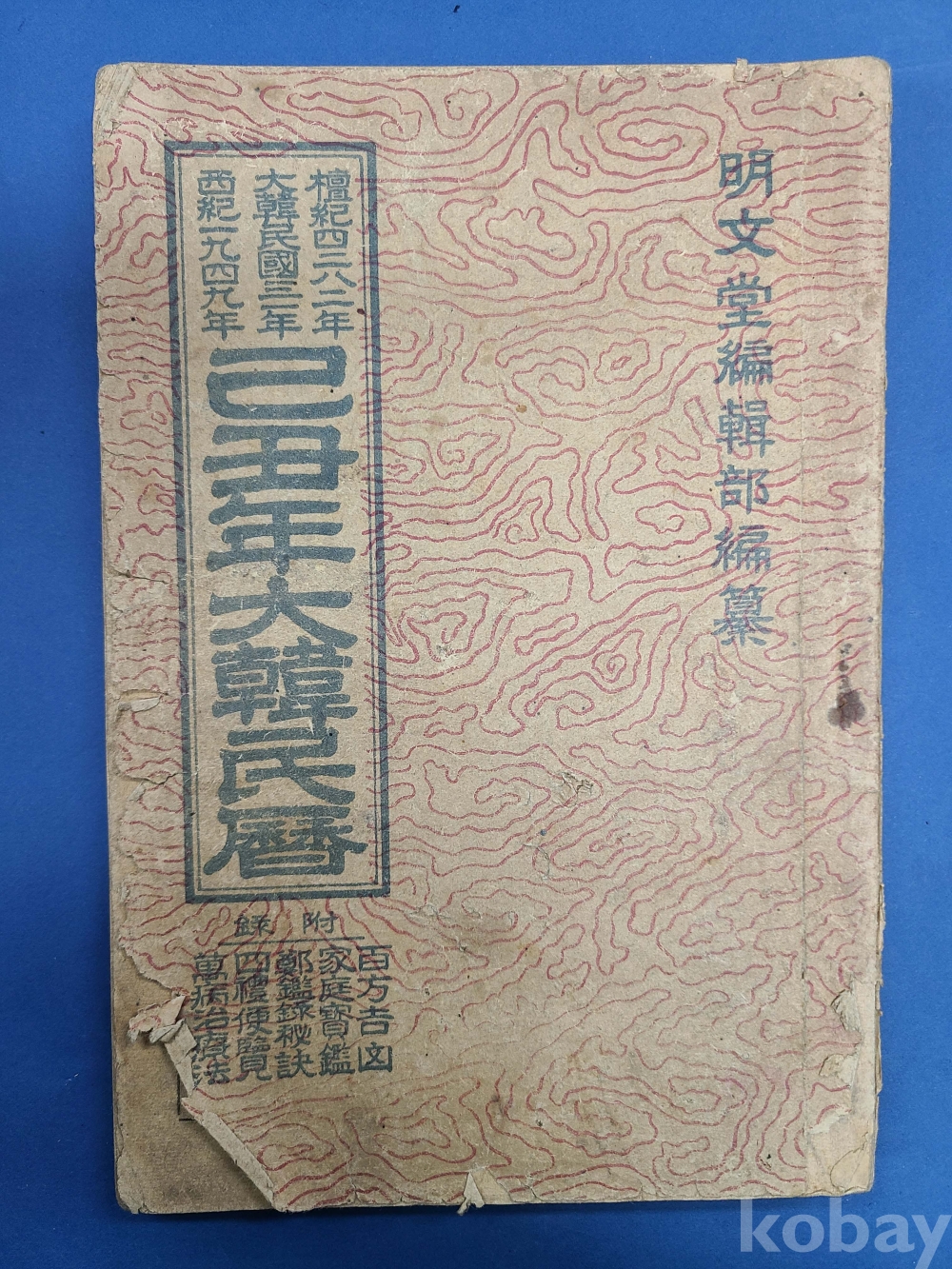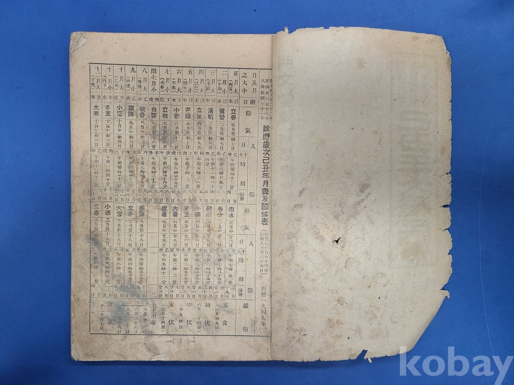 1949년 大韓民曆(명문당)/앞뒤표지부 헐었음