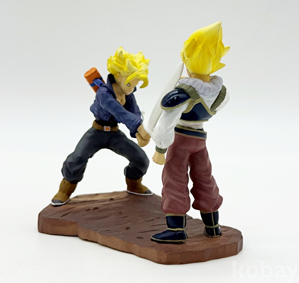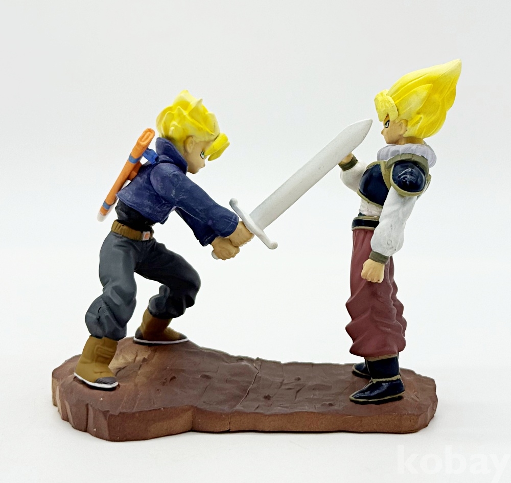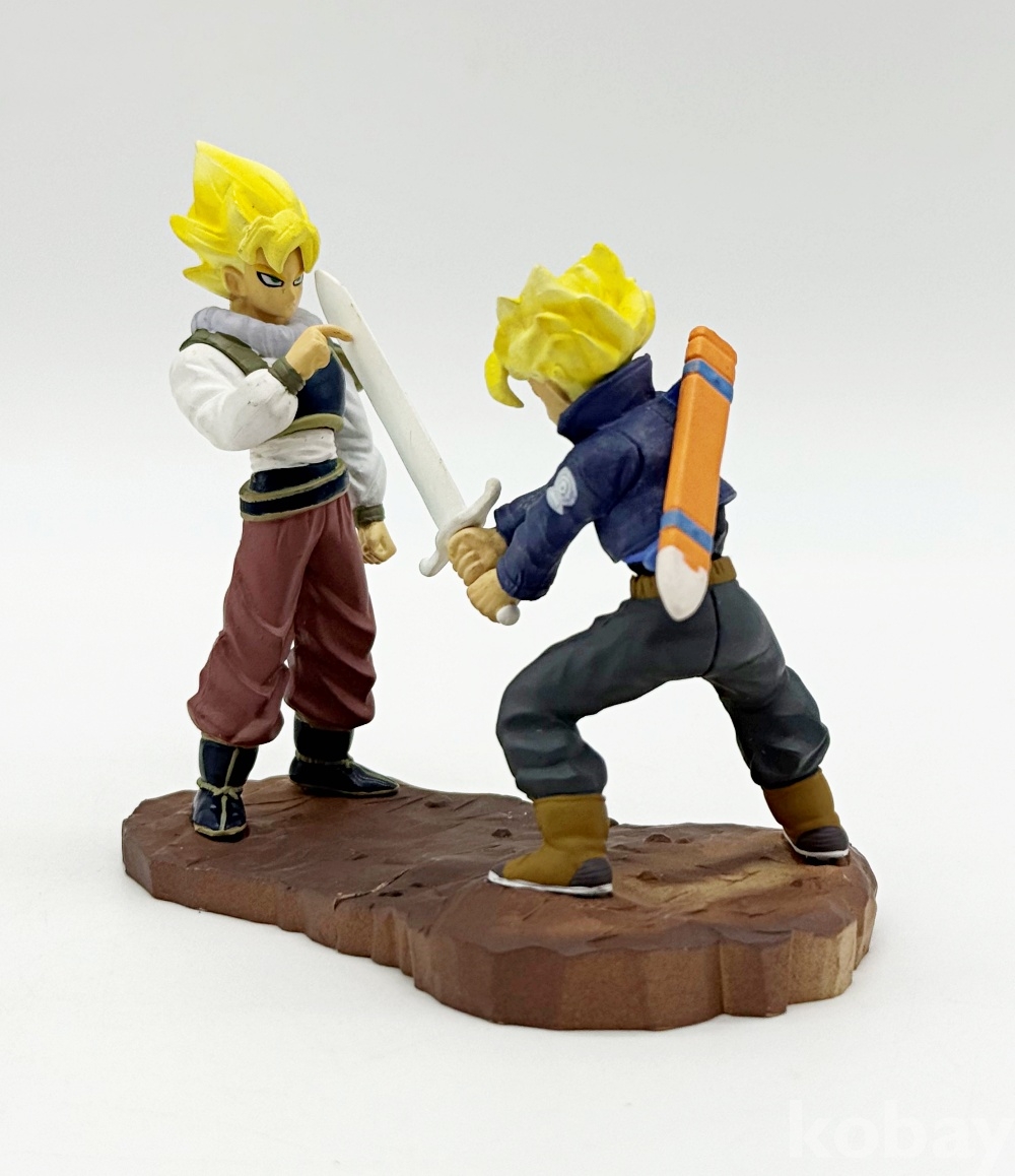 상품설명 | B/S.T 피규어 라인 미래에서 온 트랭크스가 손오공의 전투력을 시험하기 위해 덤벼들었을 시, 손오공이 손가락 하나로 대응하던 장면을 담은 피규어 2점 1set이다. | ||