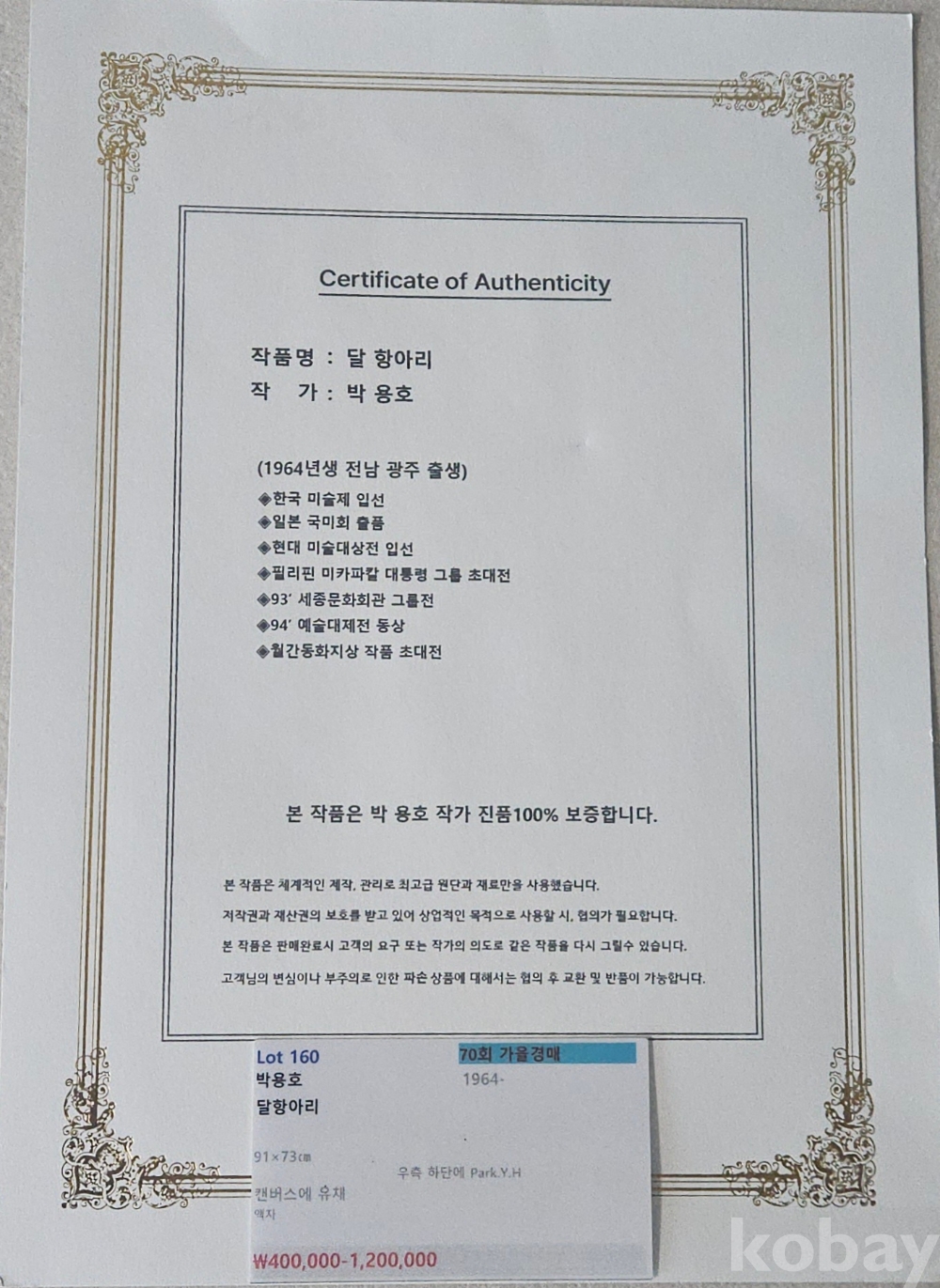 작품규격 73CM*91CM(30호) 캔버스에 유화및 혼합재료 (작가 보증서 첨부)