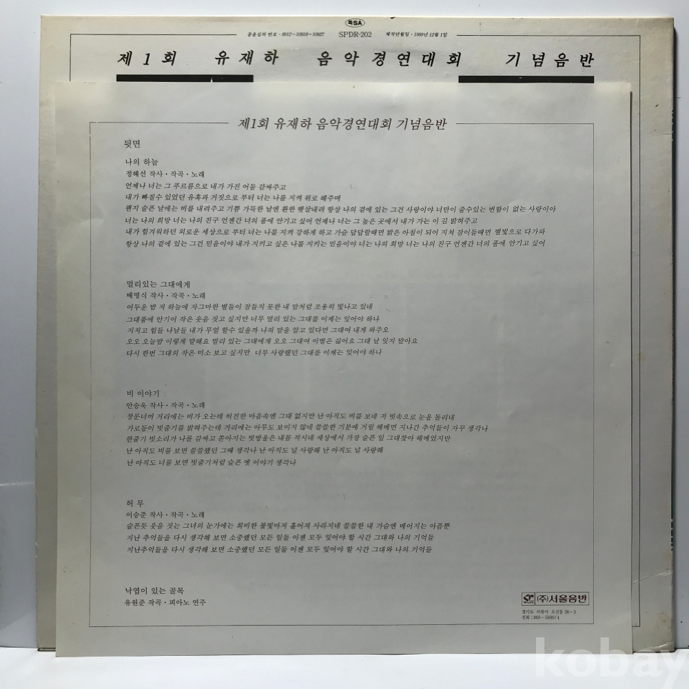 LP 30,940-132 제1회 유재하 음악경연대회 기념음반 . 자켓 EX+ 알판 EX 연한백화 년 국내반