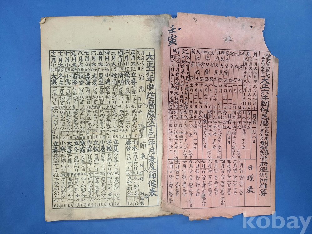 朝鮮總督府編製 대정6년 朝鮮民曆/앞표지 헐었음,뒷표지 보수하였음