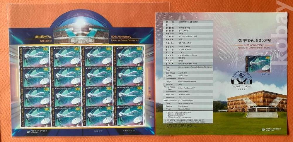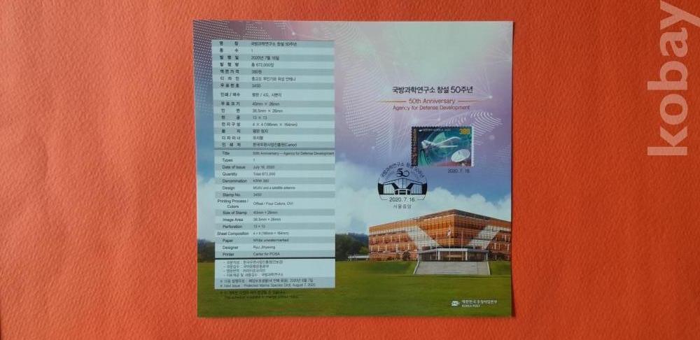 2020 국방과학연구소 창립 50주년(안내카드 포함) 16매 전지 입니다.