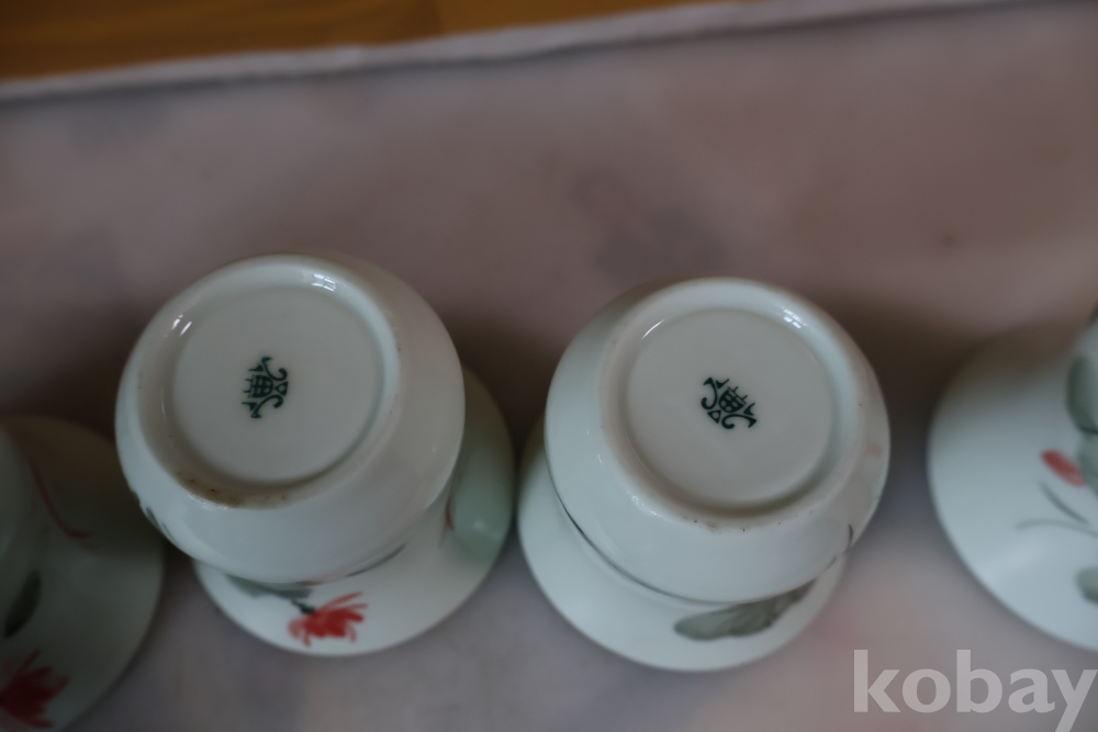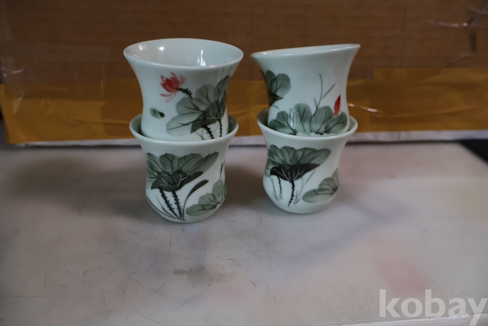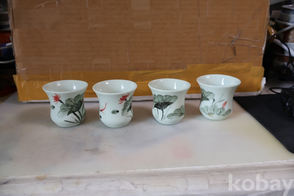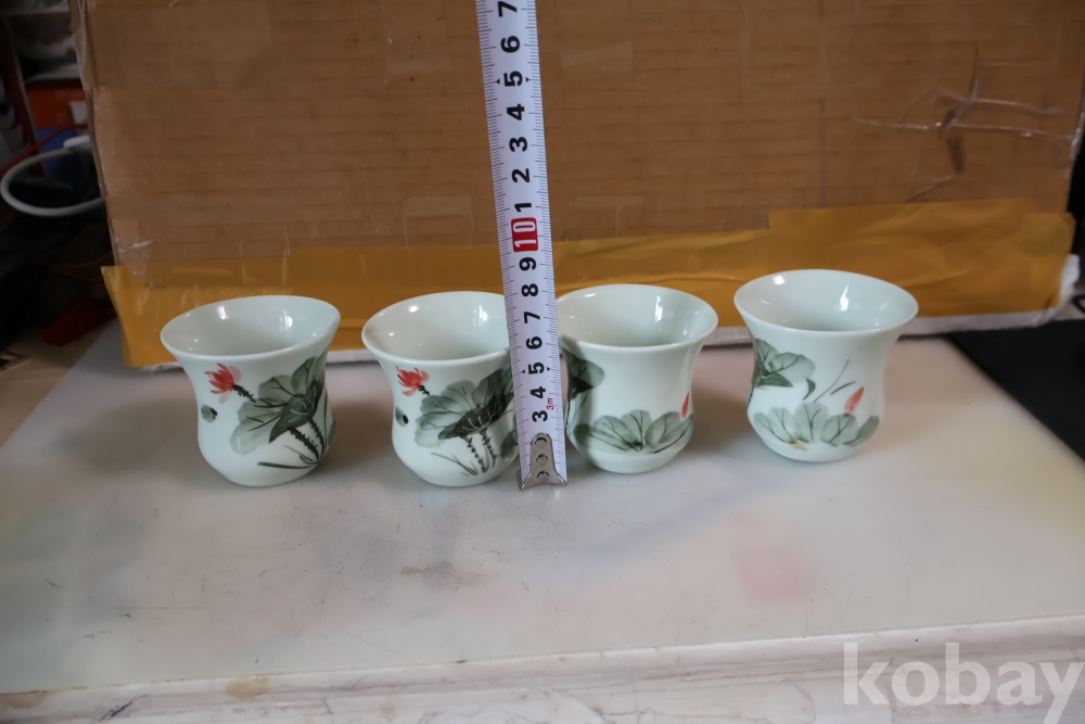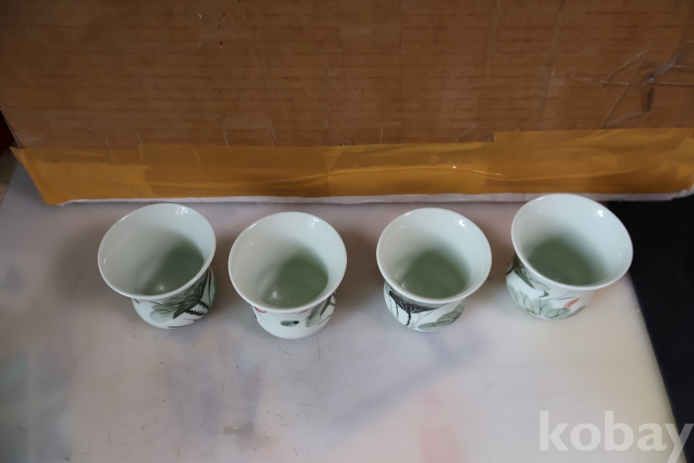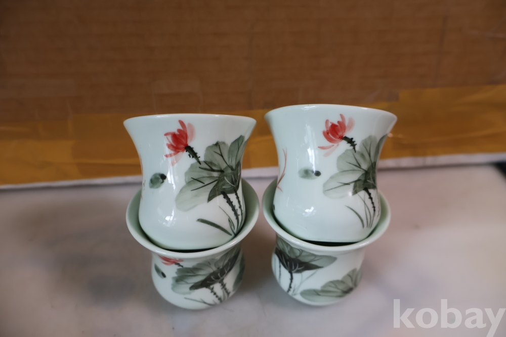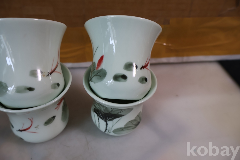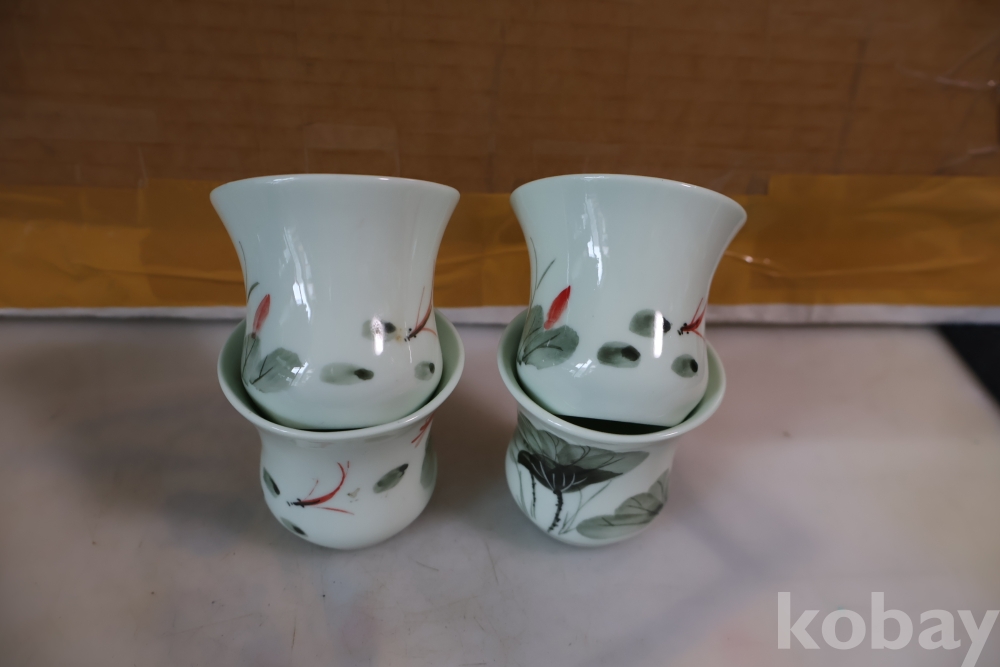 앙증맞은 도자기 잔 4 세트 물고기와 꽃을 가진 미사용 128 san disk 103//0860
