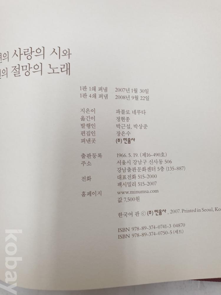 파블로 네루다, 민음사, 2008