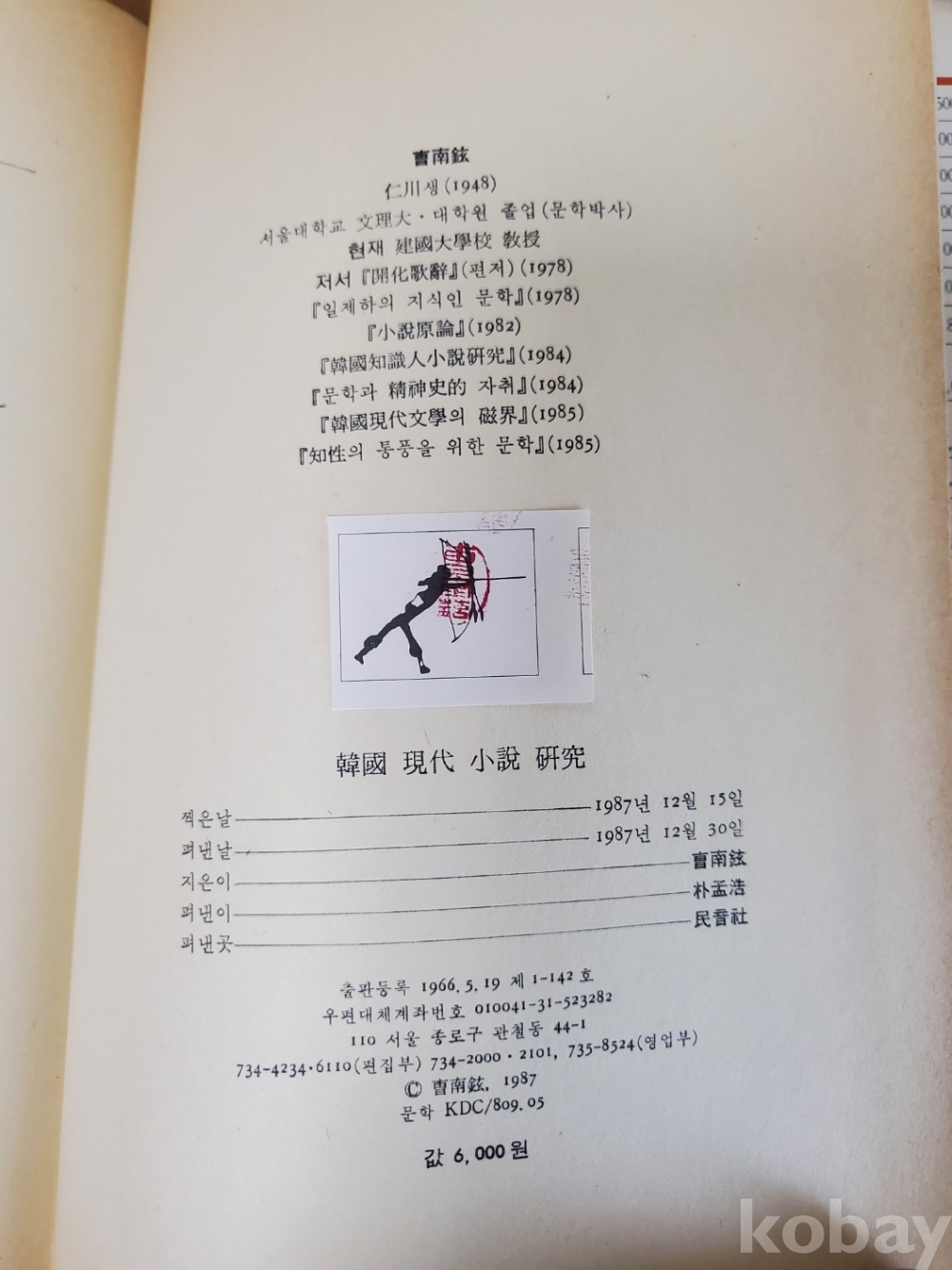 1. 한국현대소설연구, 조남현, 민음사, 1987년, 342쪽, 상태 상, 사진 참조