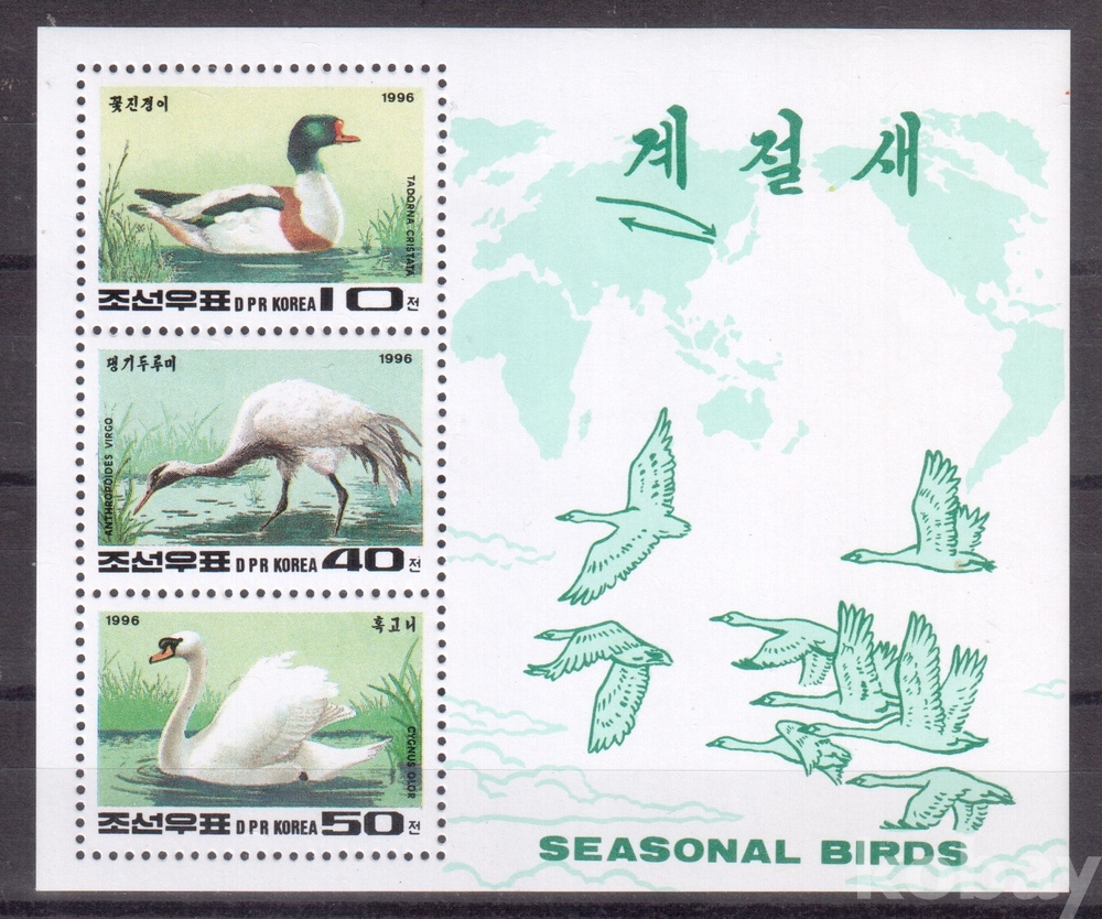 (조류) 북한 1996.8.5 계절새(2) sheetlet of 3 MNH