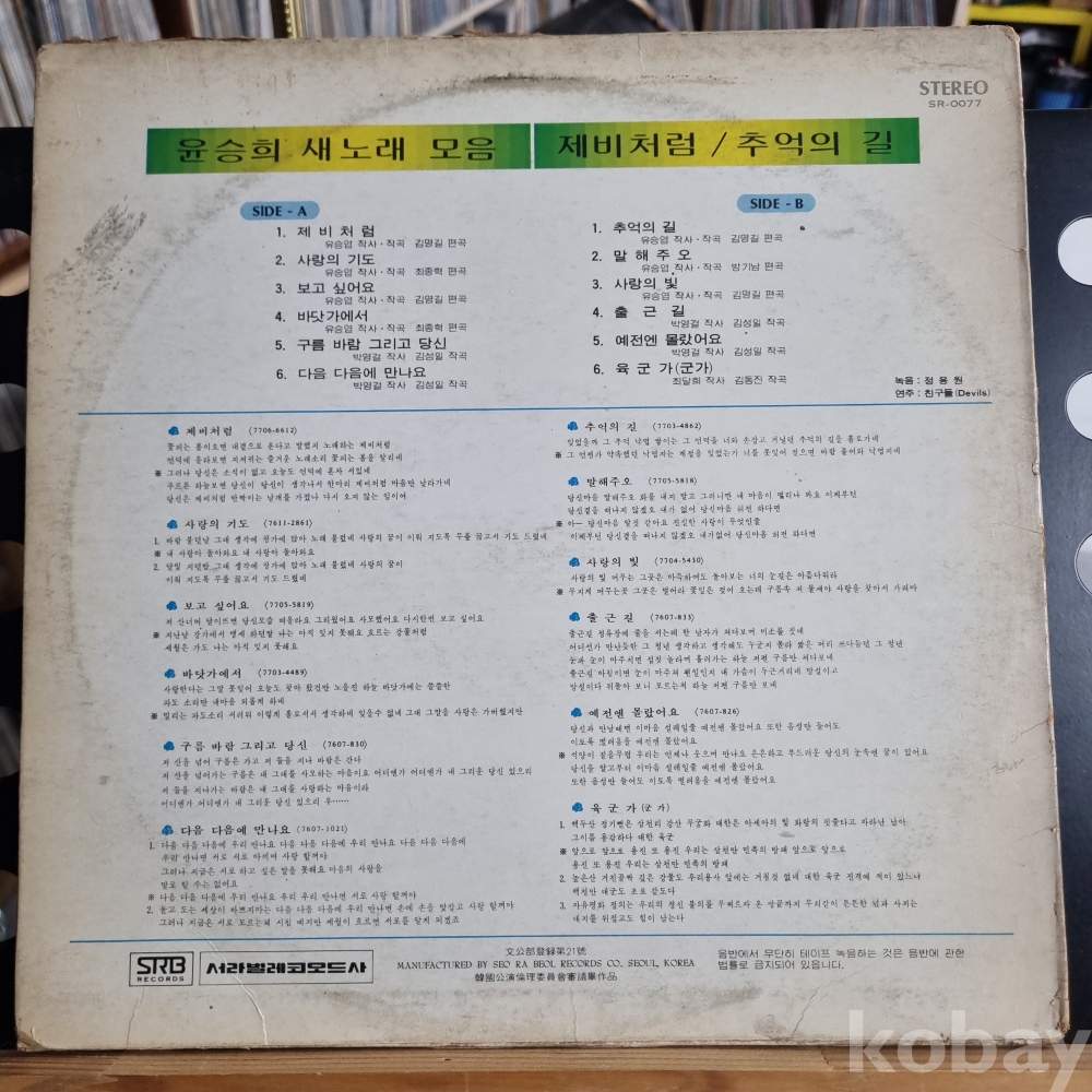 (희귀음반) 윤승희 새노래 모음 [제비처럼, 추억의길] 서라벌