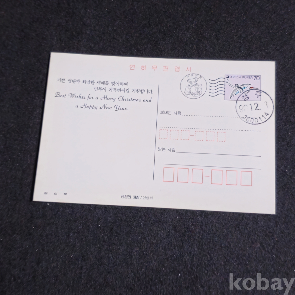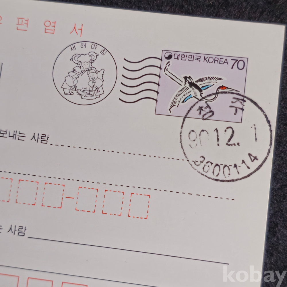 (천원경매)(((근현대사자료/우취자료/엽서))) 1990년 청주소인찍힌 산정의아침 연하우편엽서