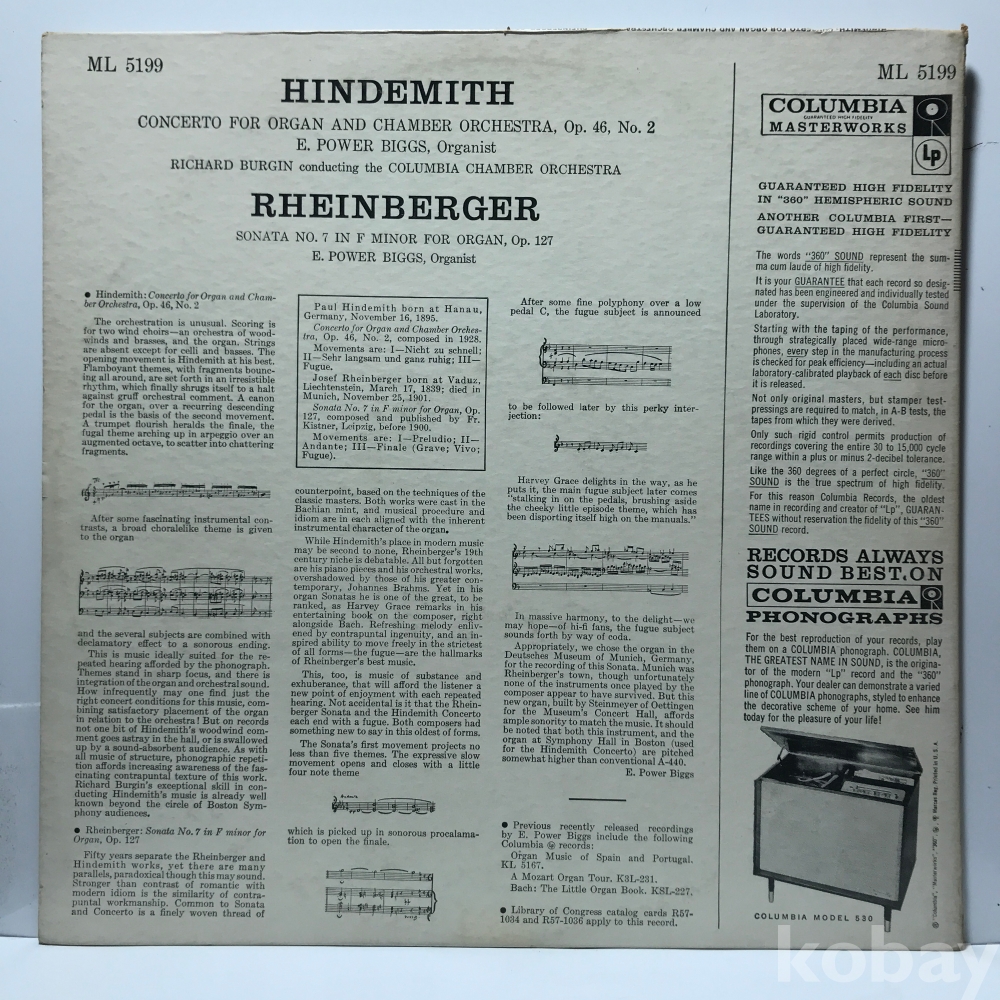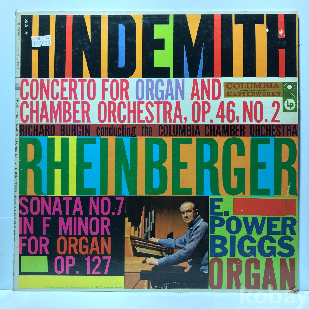 LP 22,670-32 HINDEMITH Concerto For Organ Chamber Orc OP.46 NO.2 수입 자켓 EX 알판 EX+