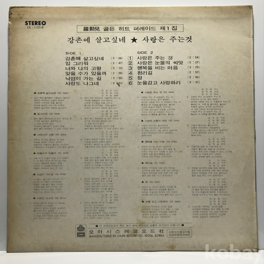 LP 27,555-209 나훈아 - 강촌에 살고 싶네 자켓 EX 알판 EX 72 년 국내반