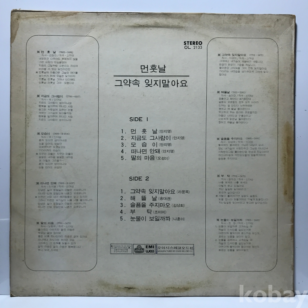 LP 22,447-53 먼훗날 - 안지영/ 오성이 라윤옥 송대관 김상희 자켓 EX- 알판 EX 79 년 국내반