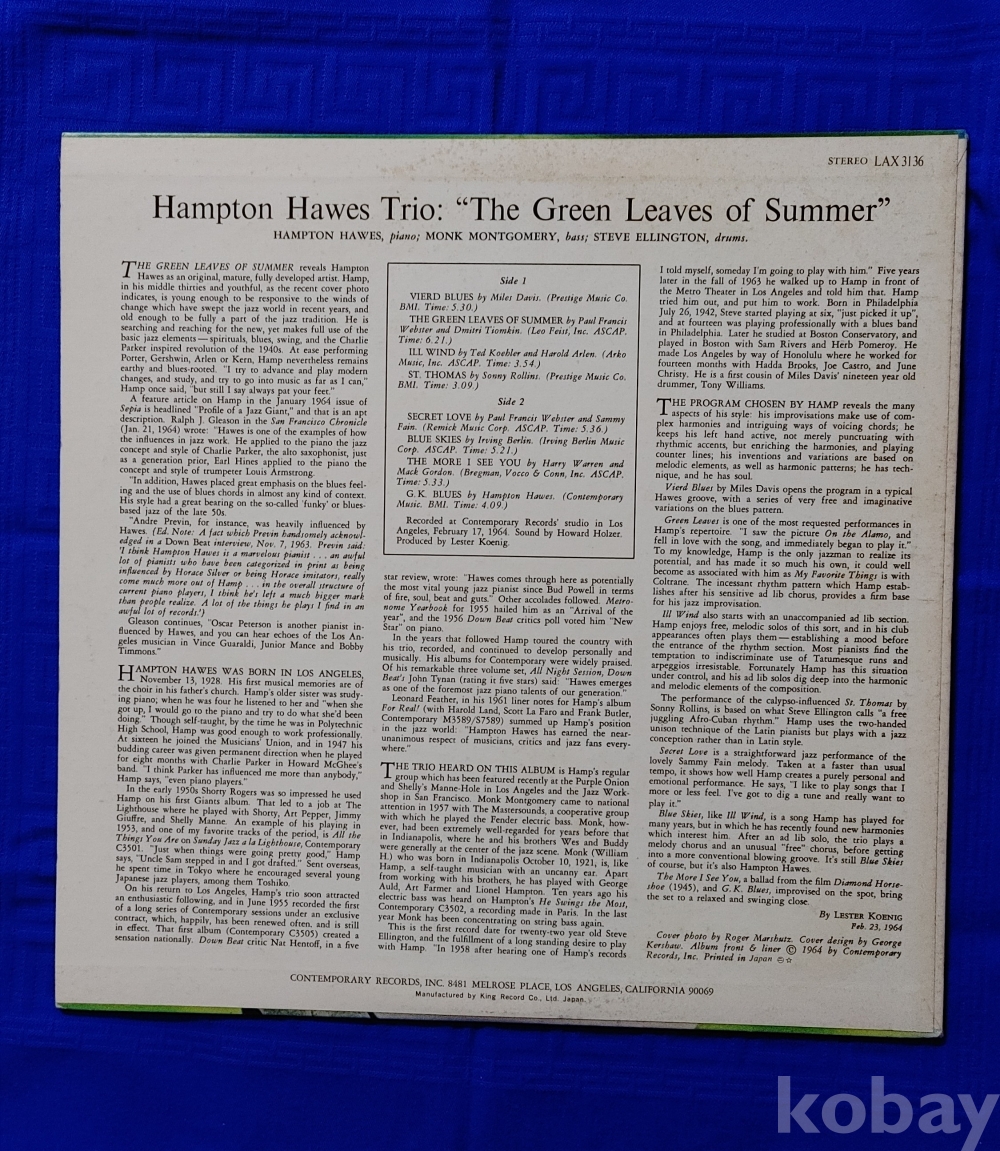Hampton Hawes 앨범입니다 / trio / 트랙은 별도로 제공합니다 / Nm+