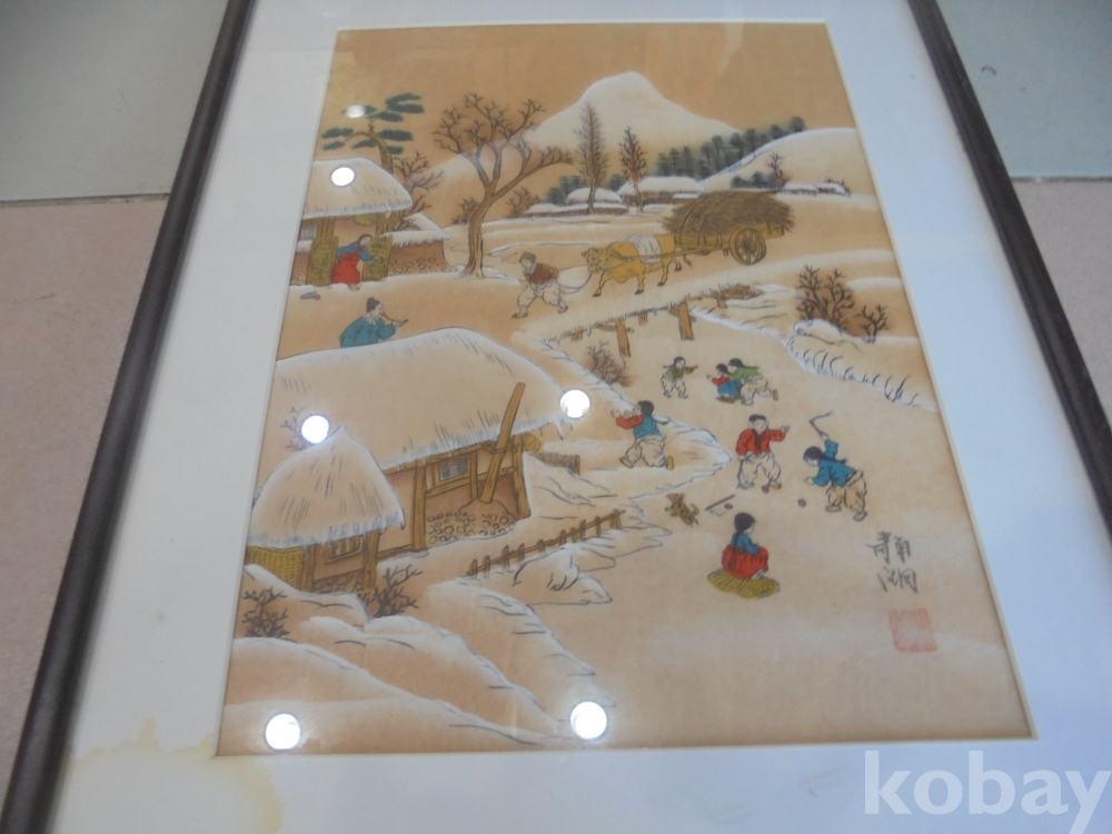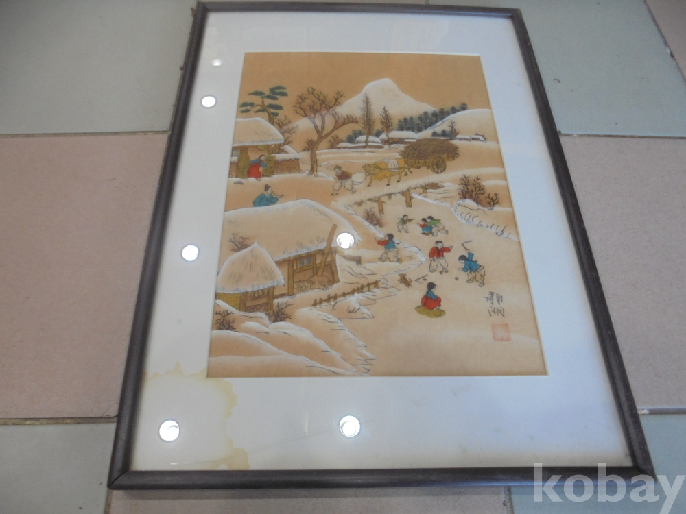 농경시대에그린것으로 추정되는 농촌겨울풍경을 정겹게 잘표현한 정감이가는 추억어린 농촌겨울풍경액자