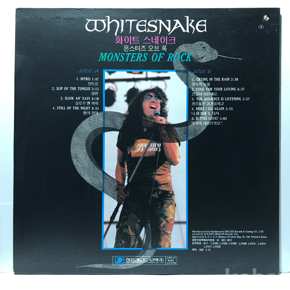 LP 30,940-165 Whitesnake - Live Monsters of Rock . 자켓 EX+ 알판 EX+ 92 년 국내반