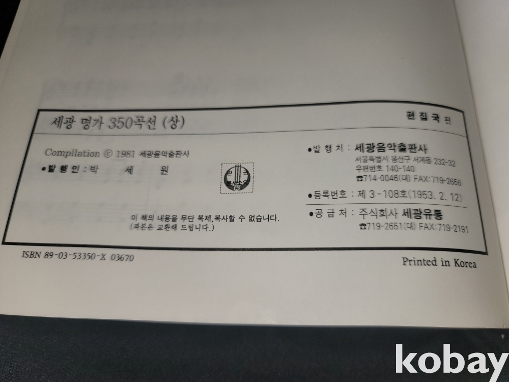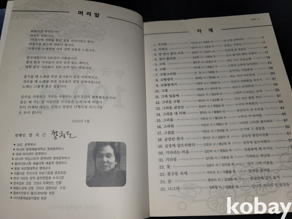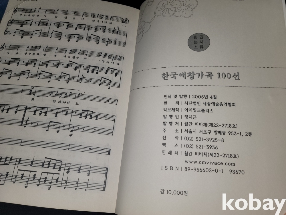 2005년 한국 애창 가곡 100선, 1981년 세광 명가 350곡선 등 2권입니다.