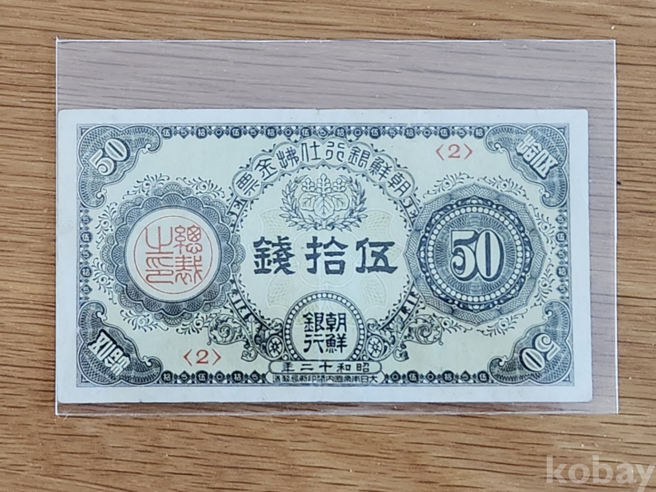1919년 조선은행 사불금표 50전지폐[번호2번 상태양호] -3