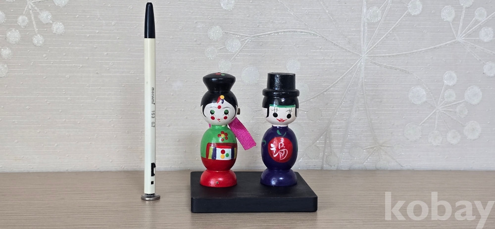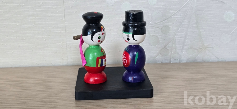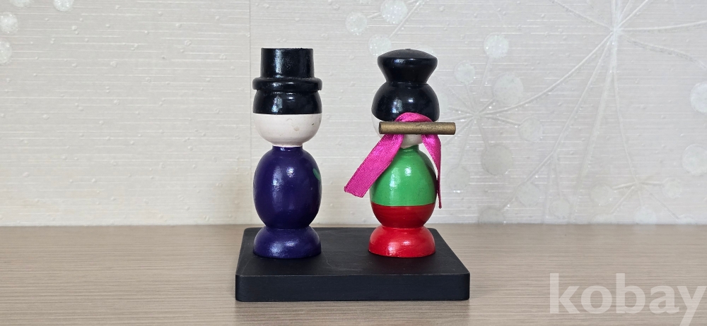 @ 6~70년대 혼례복으로 단장한 목각인형 신랑, 신부.
