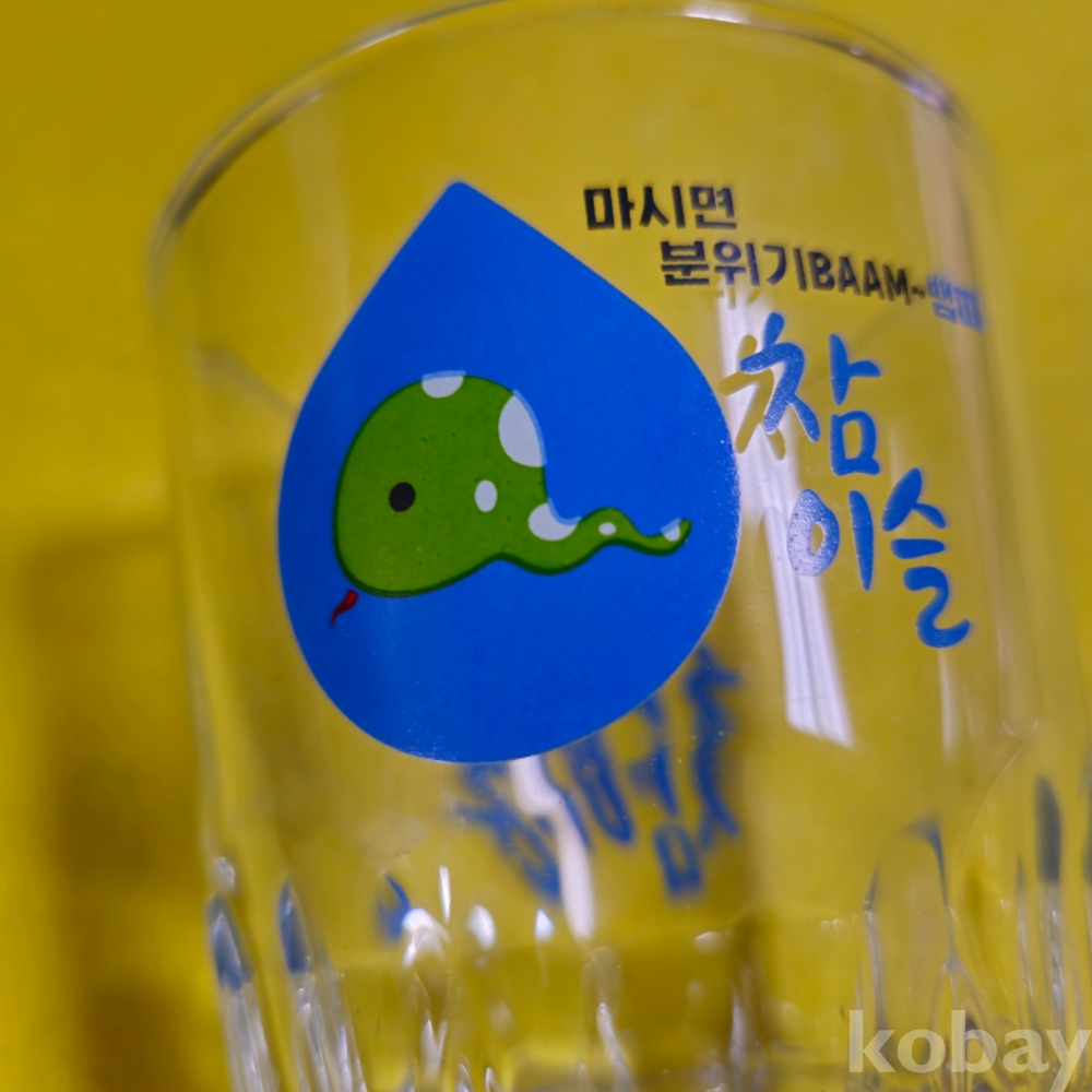 (((술자료/술잔))) 하이트진로 참이슬 뱀띠 2019년 한정판 12지신 한방울잔 소주잔 원샷 뱀띠 참이슬 소주한병을 따라 마시는 한병대형잔