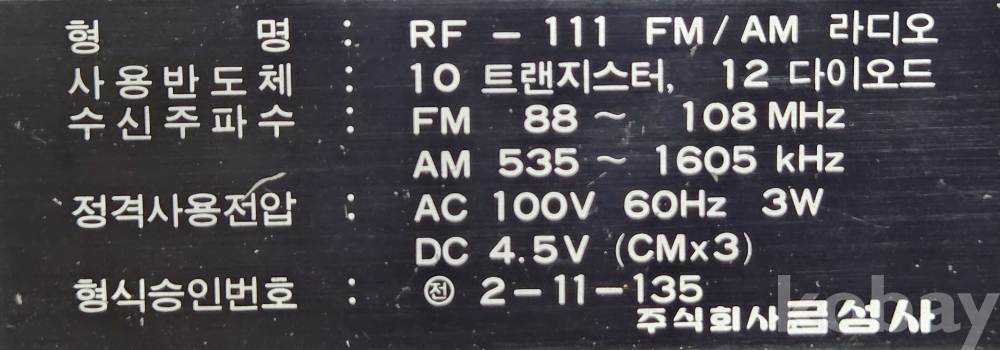 품 명 | 동작하는 금성 AM/FM 라디오 ***RF-111*** |
