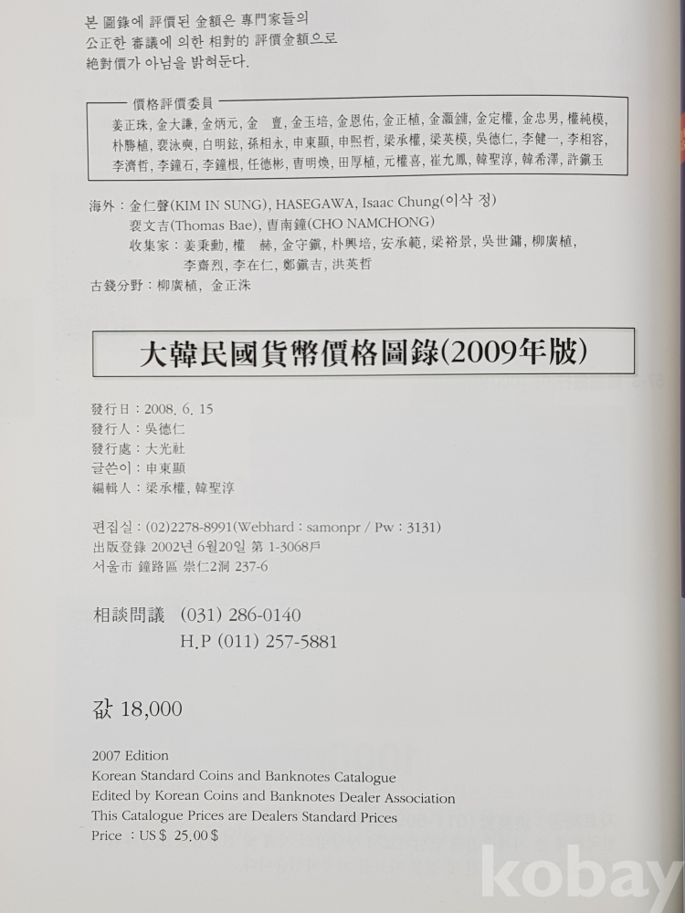 **** 大韓民國貨幣價格圖錄(대한민국화폐가격도록)*2009년/328페이지/대광사